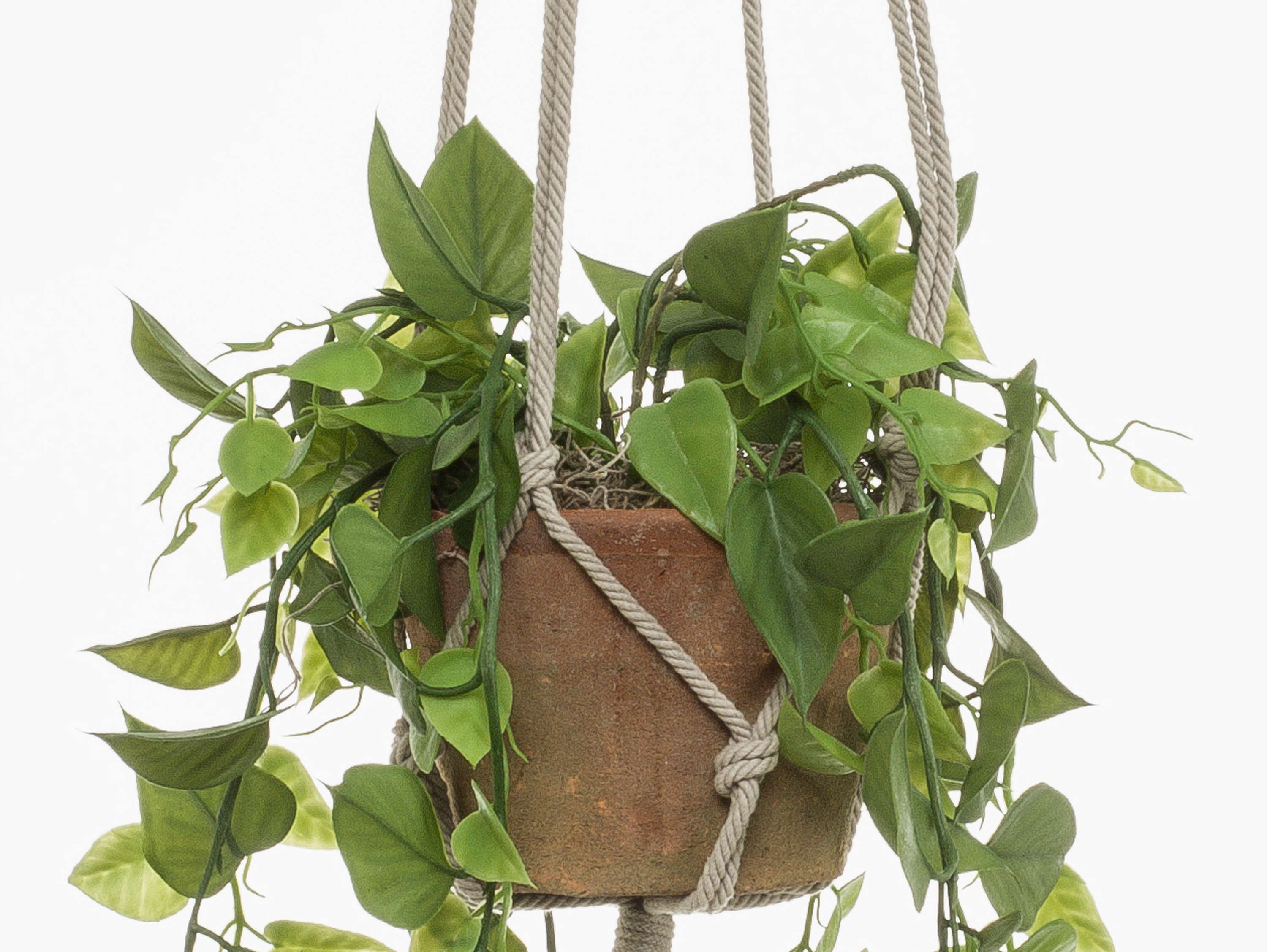The fake philodendron hanging basket RUESCA comes in a terracotta hanging pot and will make a beautiful and quick decoration for your home.