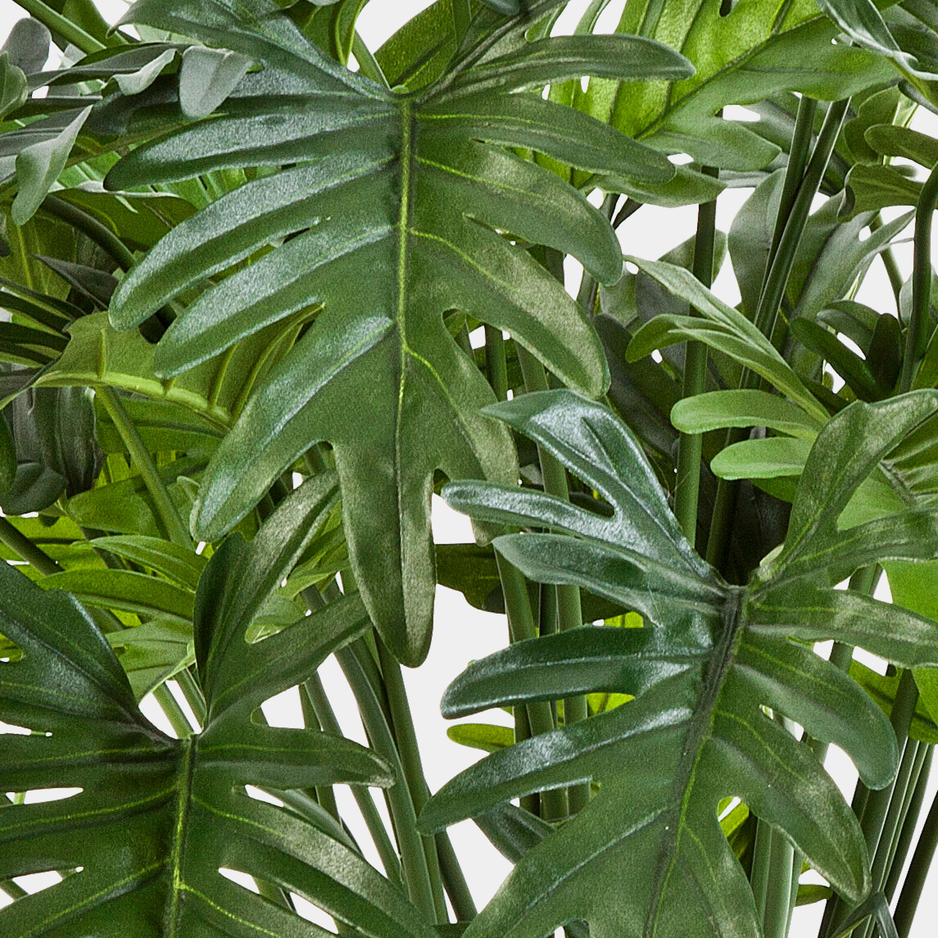 The fake philodendron bush LAINA possesses 6 heart-shaped indented leaves and belongs to the Araceae family. Thanks to its large dark green leaves, the green plant will beautify e.g your living room or hallway.