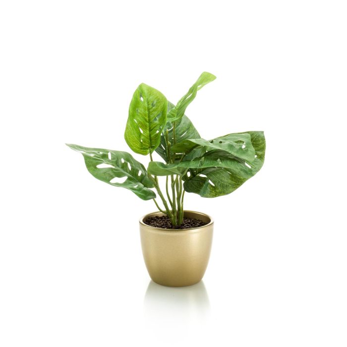 Artificial Philodendron Monstera Deliciosa PUYA, golden ceramic pot, 12"/30cm