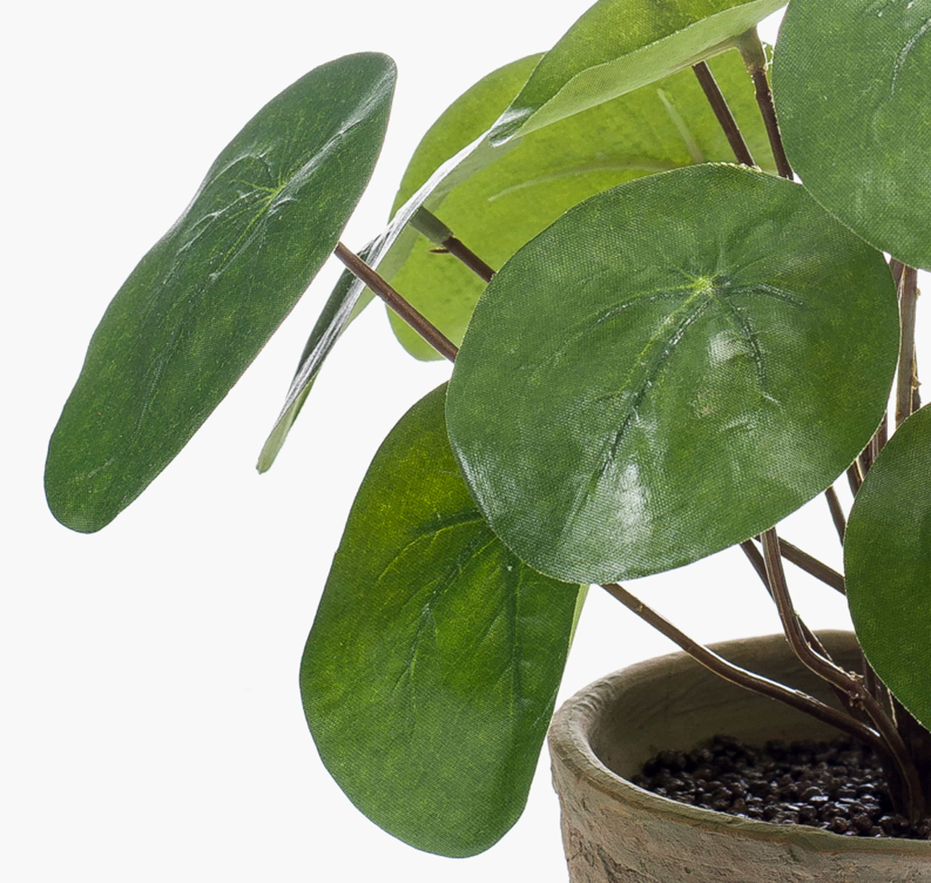 Fake chinese money plant SYBIL with attractive leaf pattern. Set a beautiful accent in your living room, kitchen or hall with this artificial plant.
