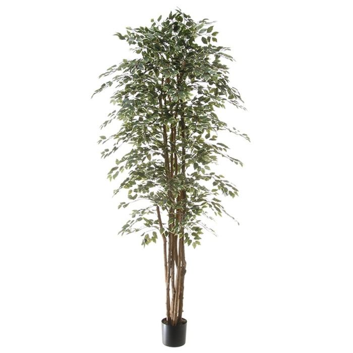 Artificial plant Ficus Benjamina ALEJA, real trunk, green-white, 7ft/210cm