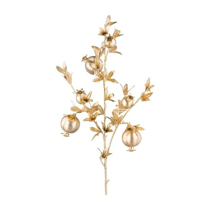 Artificial pomegranate branch DRILKE with glitter, fruits, gold, 3ft/95cm
