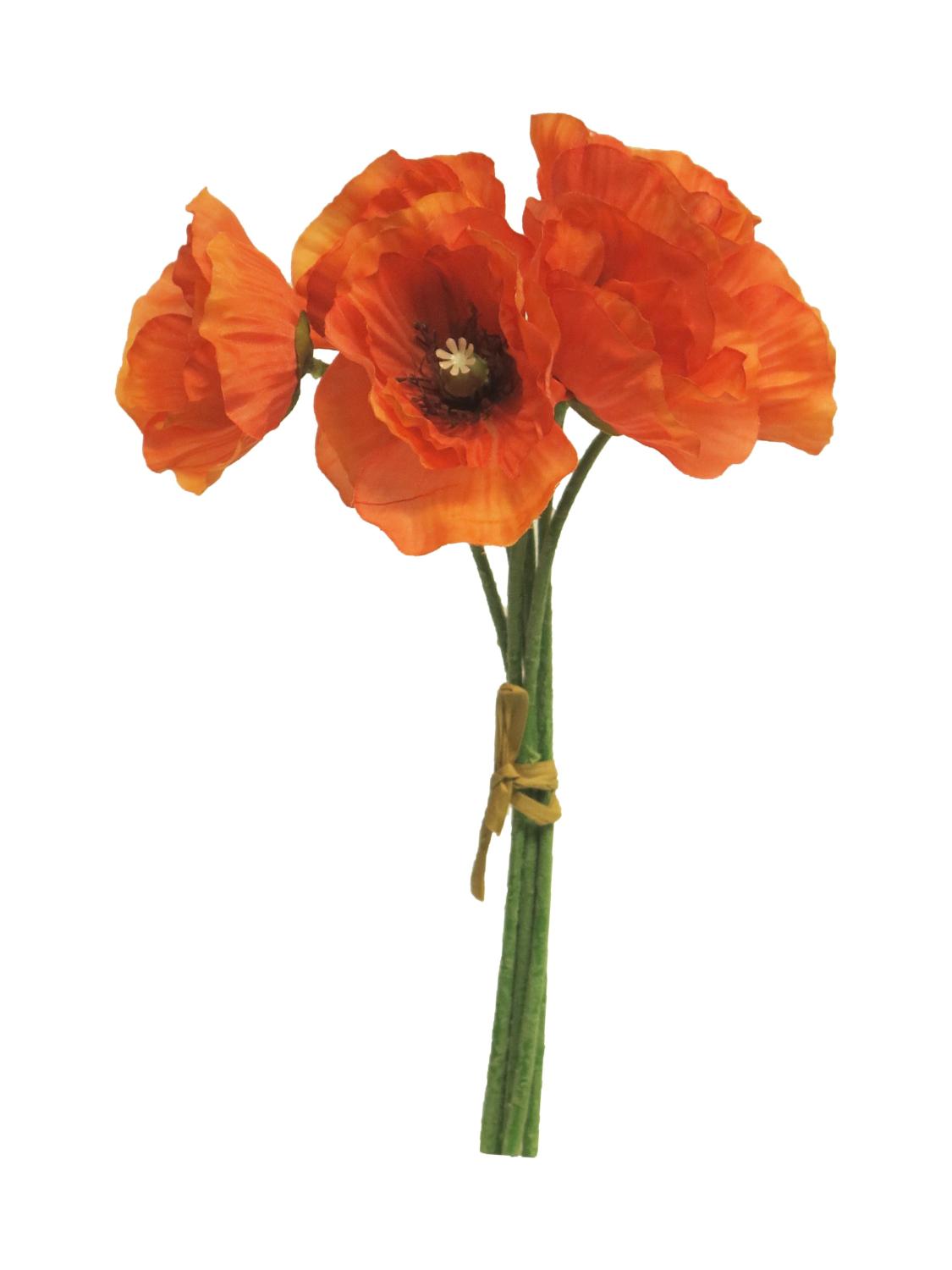 Artificial poppy bouquet XIONG, orange, 12"/30cm