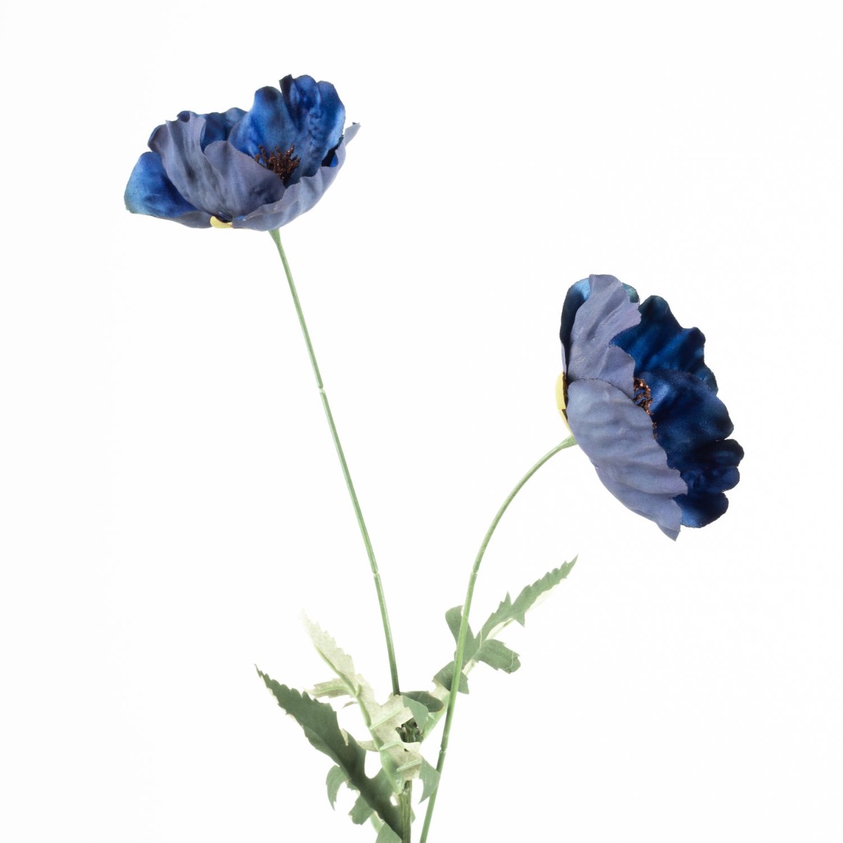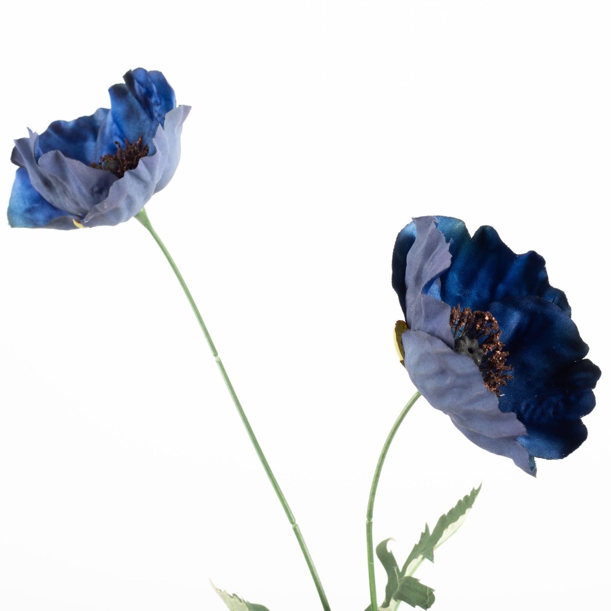 Artificial poppy branch GUNDULA, Eco Collection, royal blue, 28"/70cm, Ø2.8"-3.1"/7-8cm