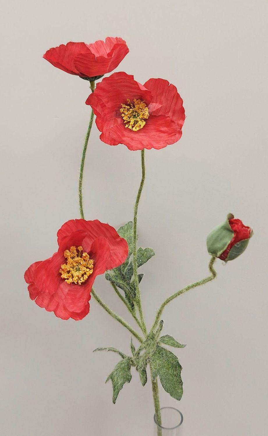 Artificial poppy branch OXANDRINE, red, 24"/60cm