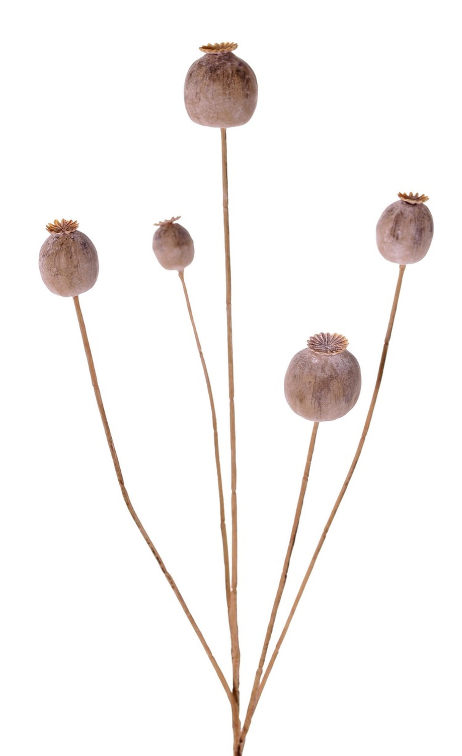 Artificial poppy capsule FILOMELA, light brown, 30"/75cm