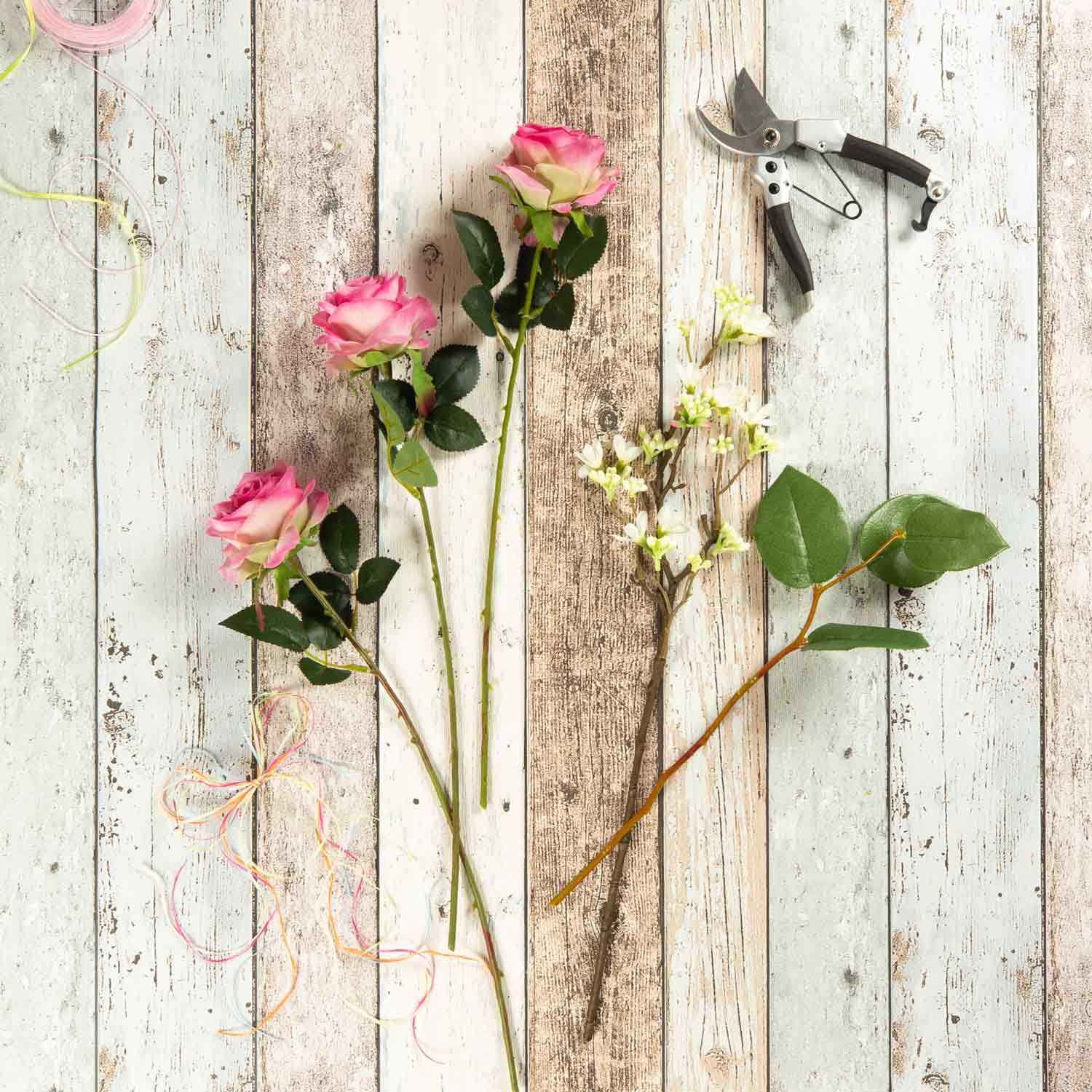 - Tied together with a sisal cord, the flowers and branches can be shortened individually or, after removing the cord, can also be used separately for creative projects