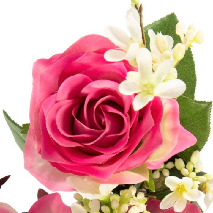 Artificial rose bouquet SIMONY with accessories, pink, 18"/45cm, Ø8"/20cm