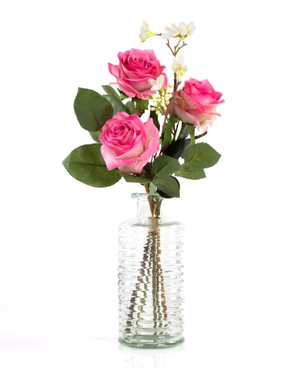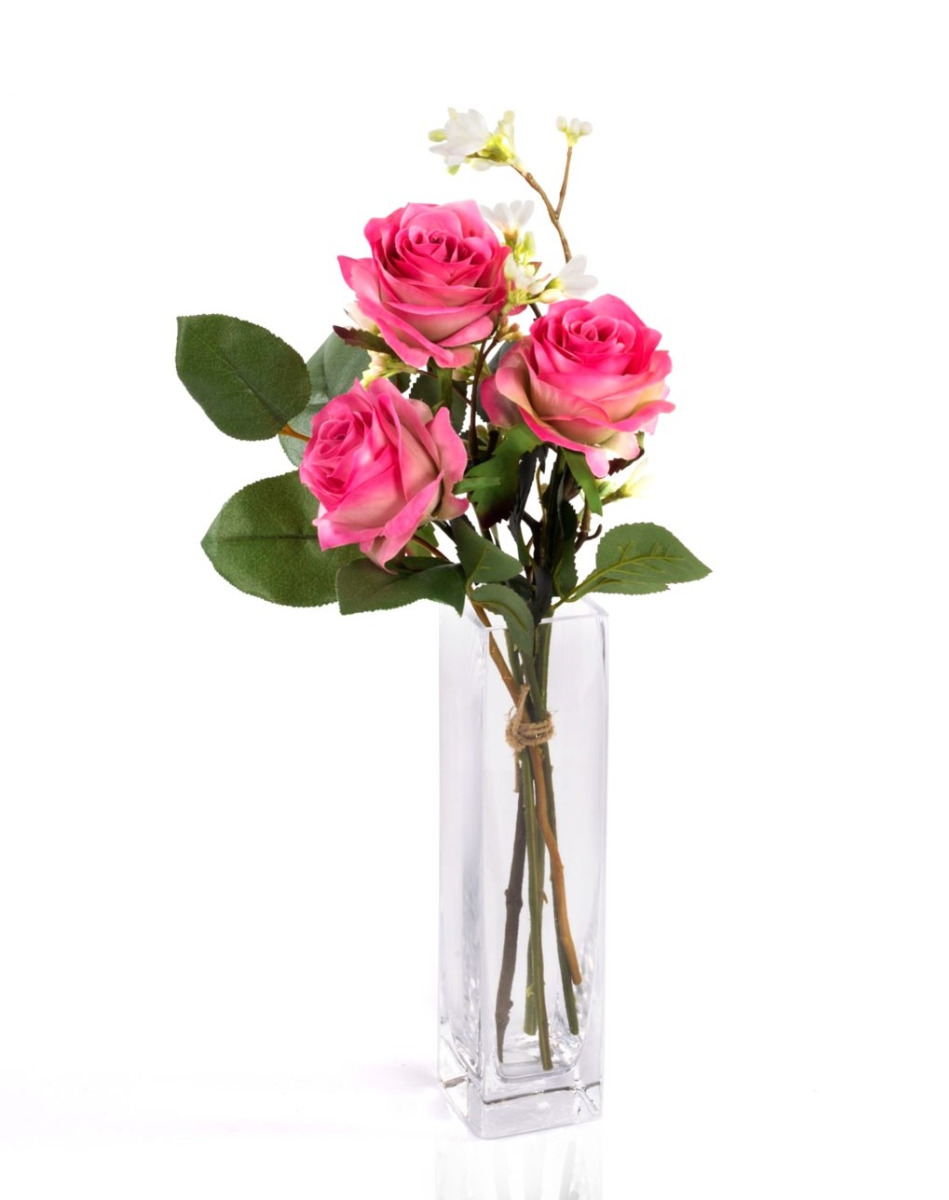 Hand-tied in Germany, this small rose bouquet SIMONY consists of 3 light and dark pink roses. The artificial arrangement is surrounded by the seven son flower of Zhejiang and complemented by the fresh green of apple leaves. The artificial bouquet will decorate your table vase for various table occasions such as Valentine's Day, anniversaries or as an addition to a birthday gift, and much more. The flower ensemble can also be wonderfully extended to a lush bouquet, simply add other SIMONY bouquets whether of the same colour or mixed, let your imagination run wild.