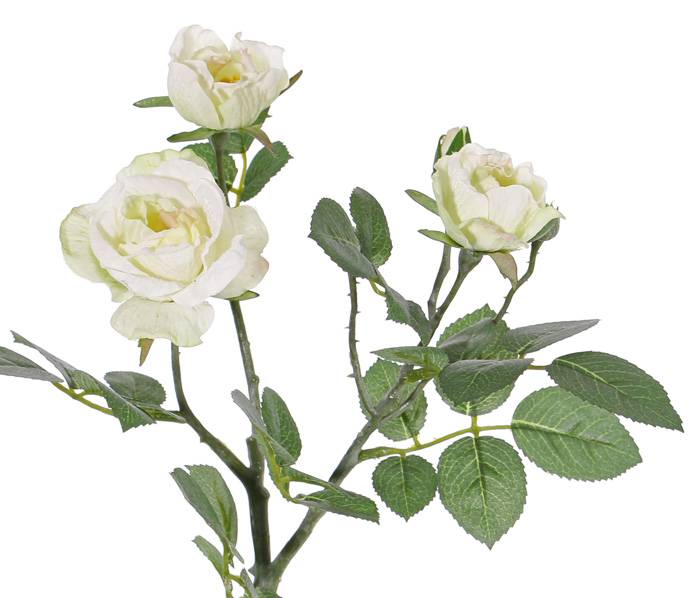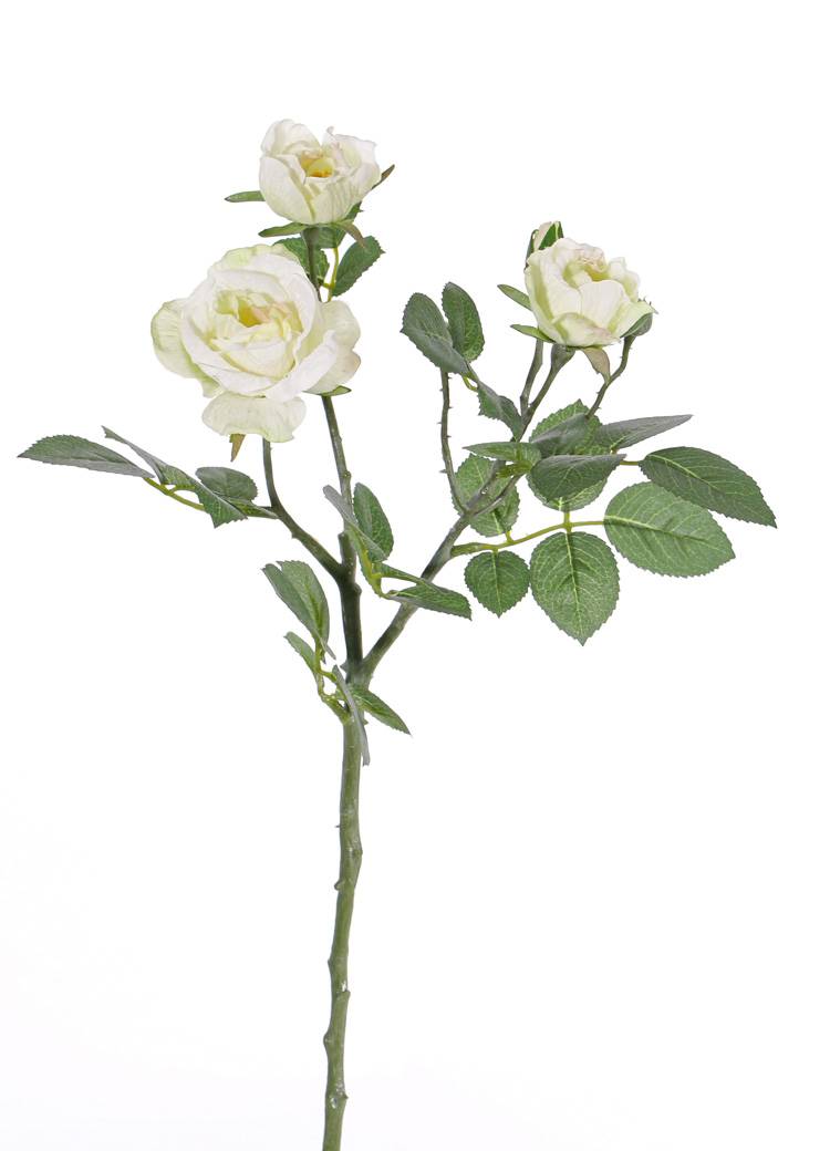 Artificial rose branch CORALEE, white-green, 20"/50cm, Ø1.2"-2.8"/3-7cm