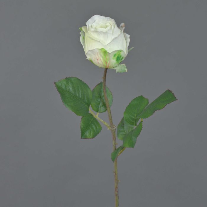 Artificial rose POPI, white-green, 22"/55cm