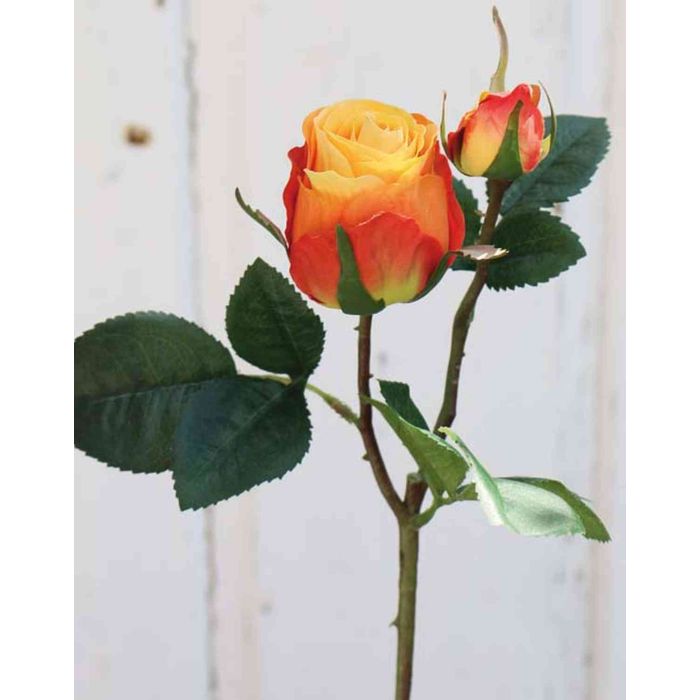 Artificial rose RENESMEE, yellow-red, 18"/45cm, Ø2.4"/6cm