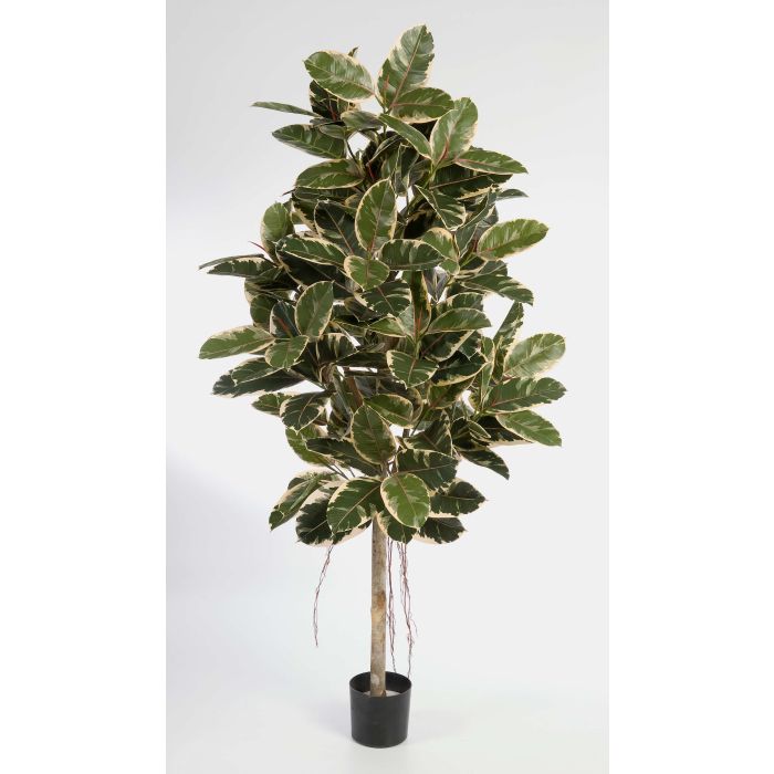 Artificial Rubber tree DEVI, natural stem, green-white, 7ft/210cm