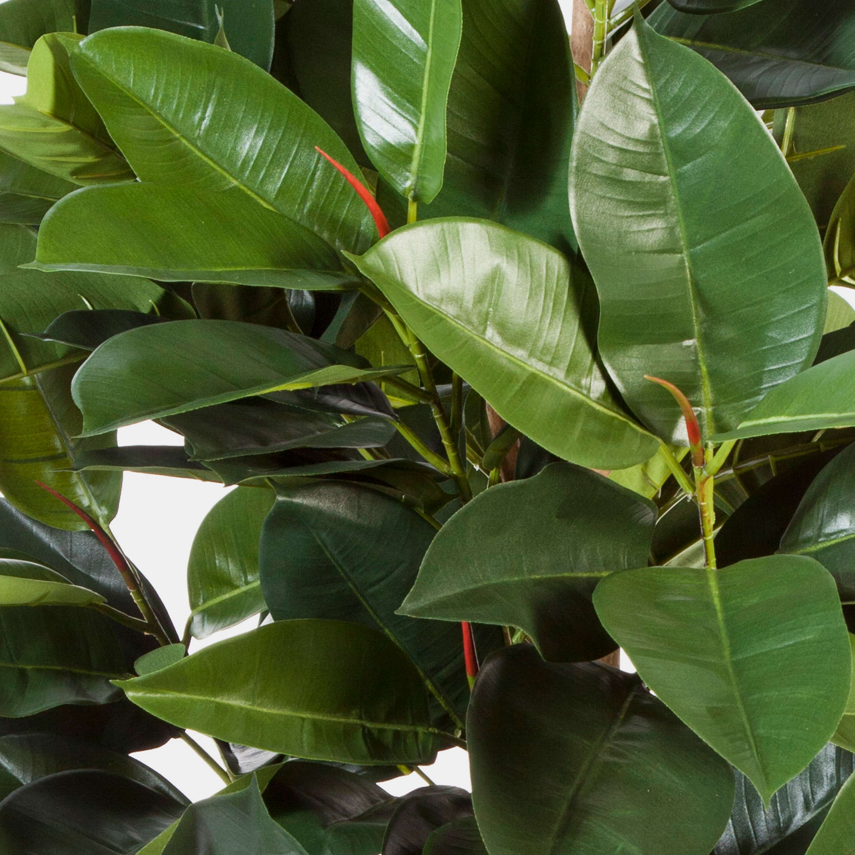 The fake rubber tree DEVI has green leaves with an oval shape and a brown natural trunk. The artificial tree is approx. 5ft/140 cm high in total and fits ideally into Asian restaurants.