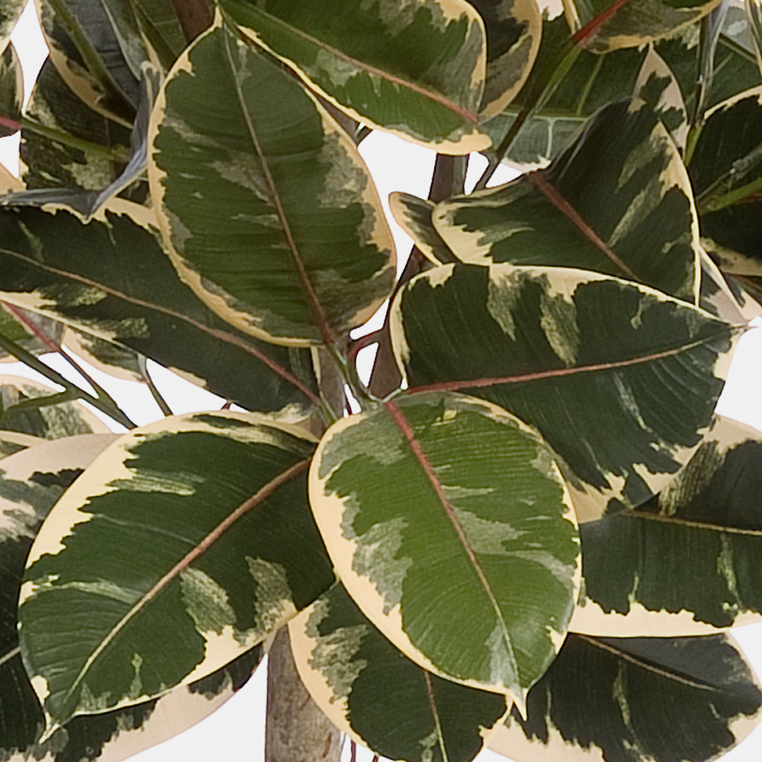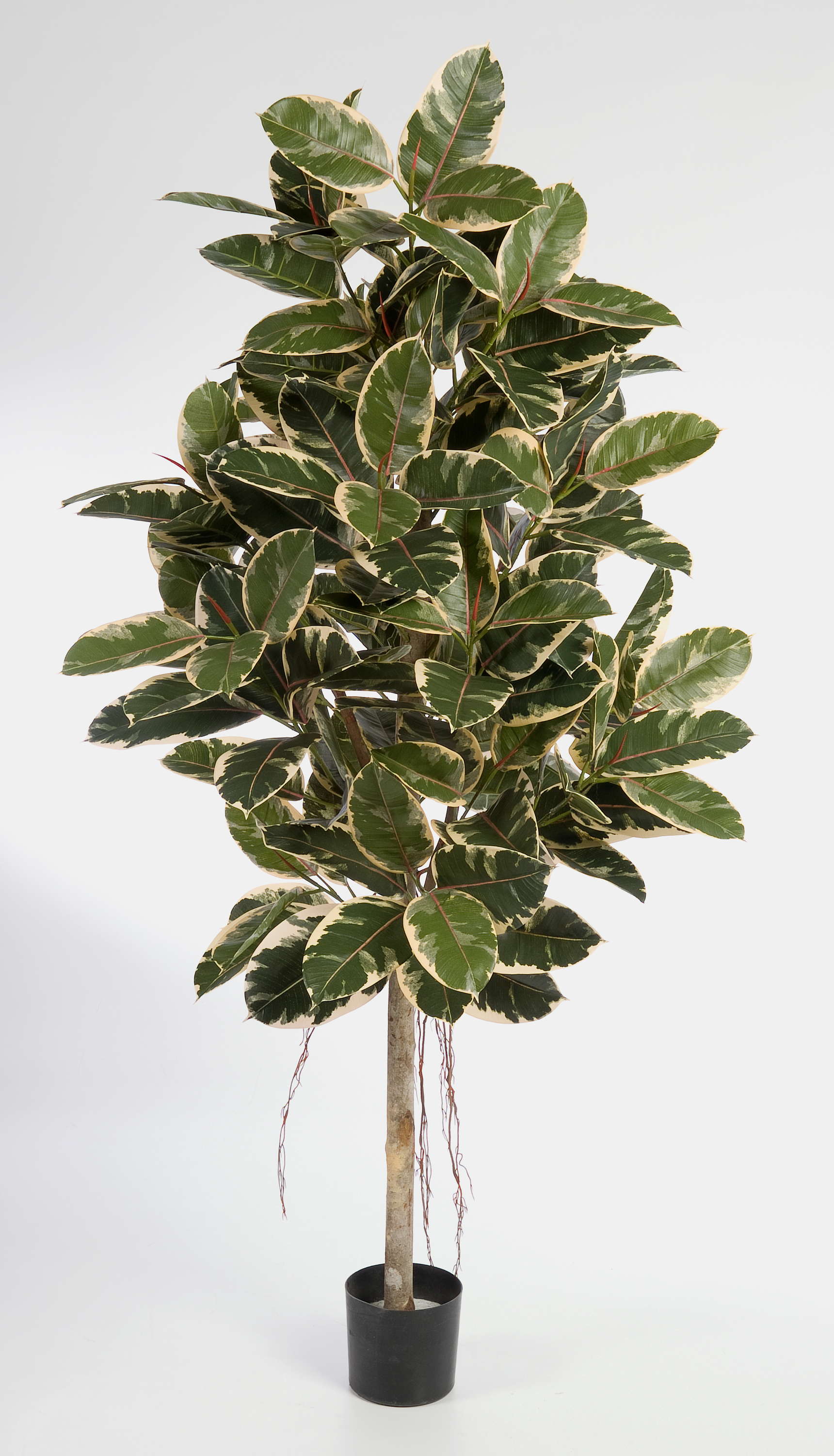 Artificial rubber tree DEVI, natural trunk, green-white, 5ft/140 cm