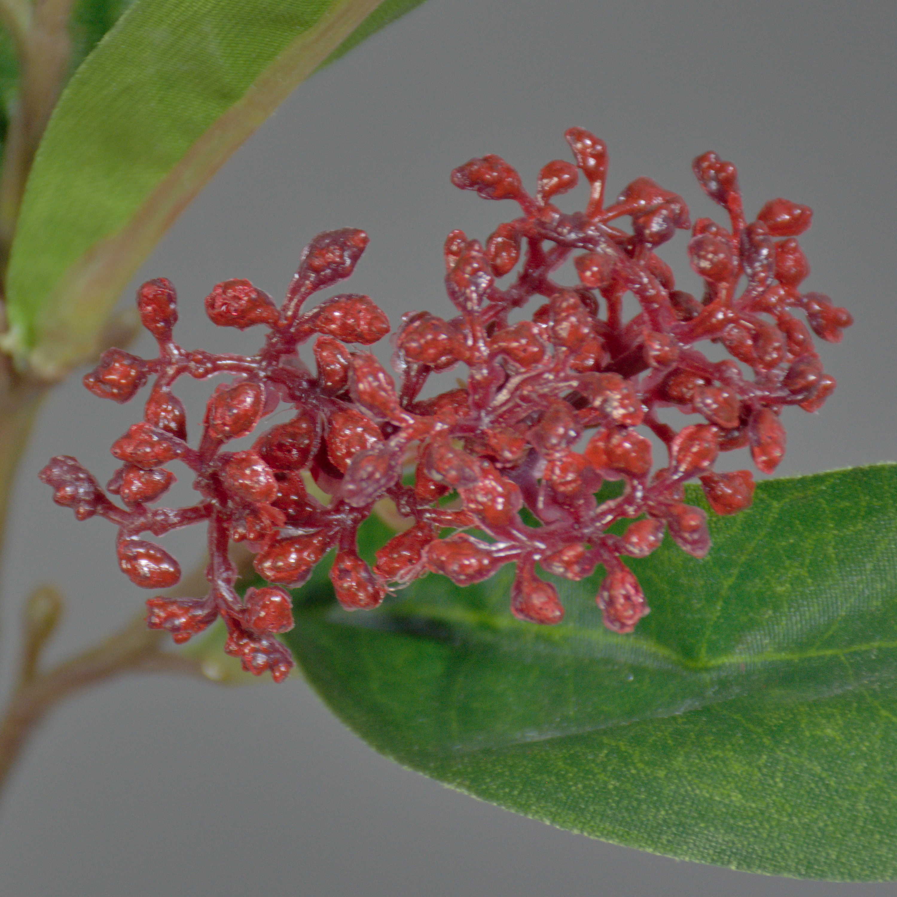 Artificial Skimmia spray EBONY, with flowers, red, 14"/35cm