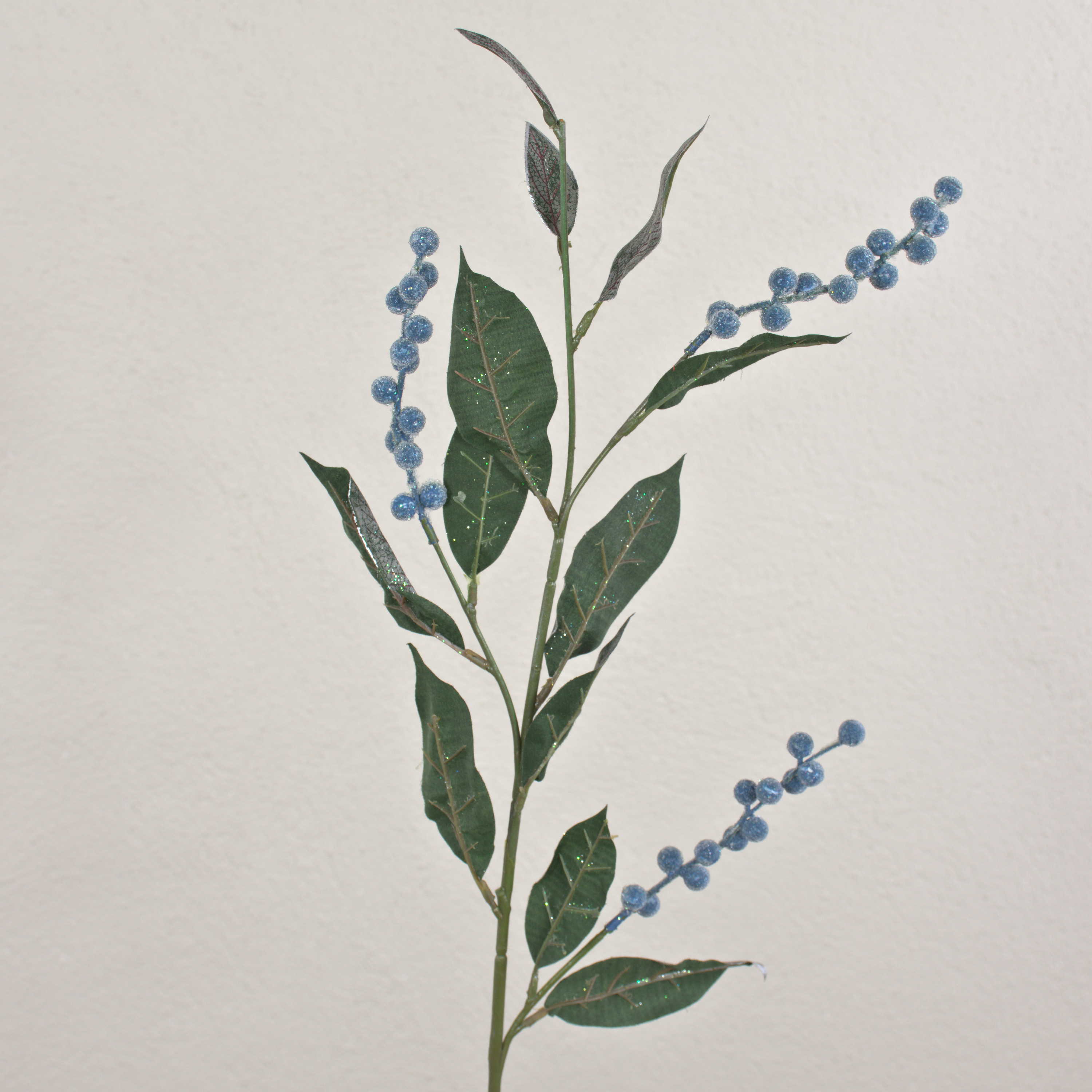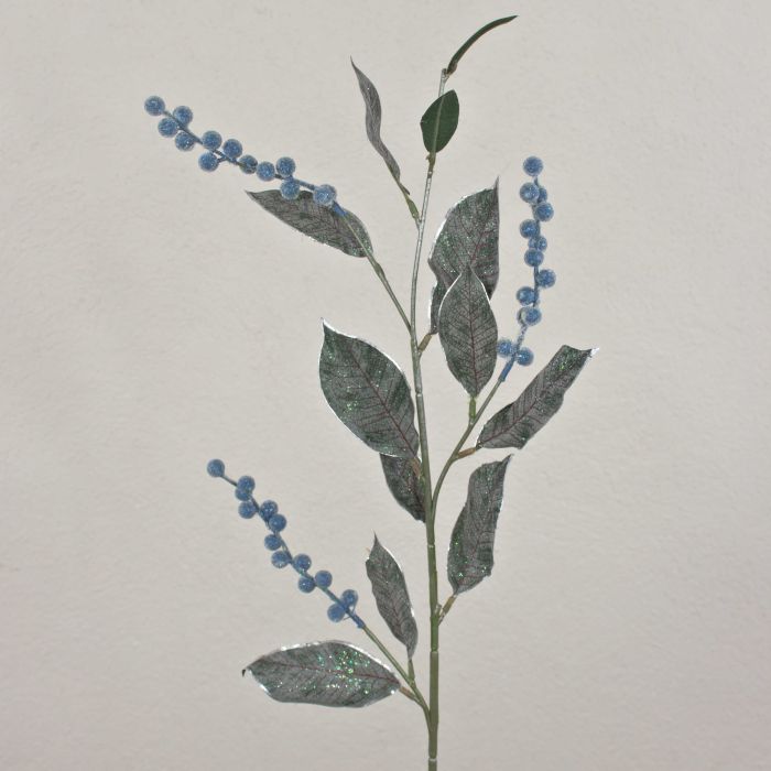 Artificial snowberry branch ELYSA, frosted, blue, 30"/75cm