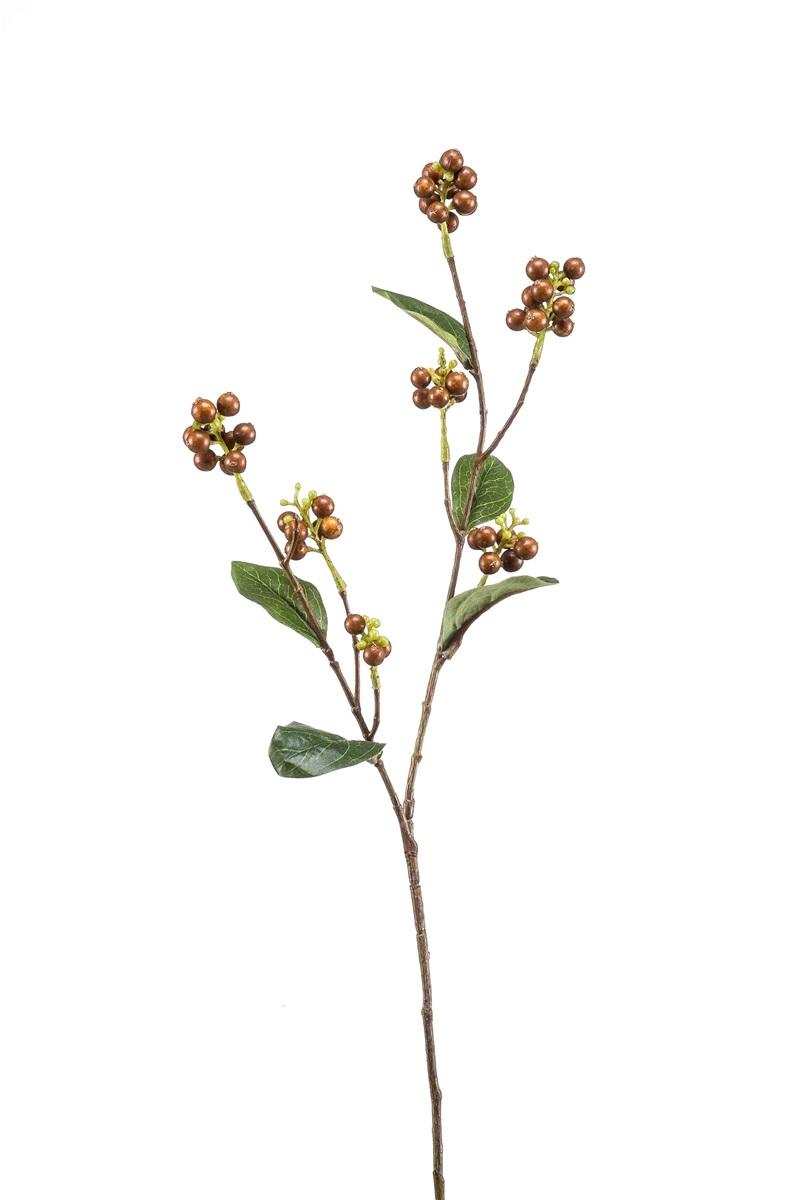 Artificial snowberry branch ÜBBE with berries, brown, 28"/70cm