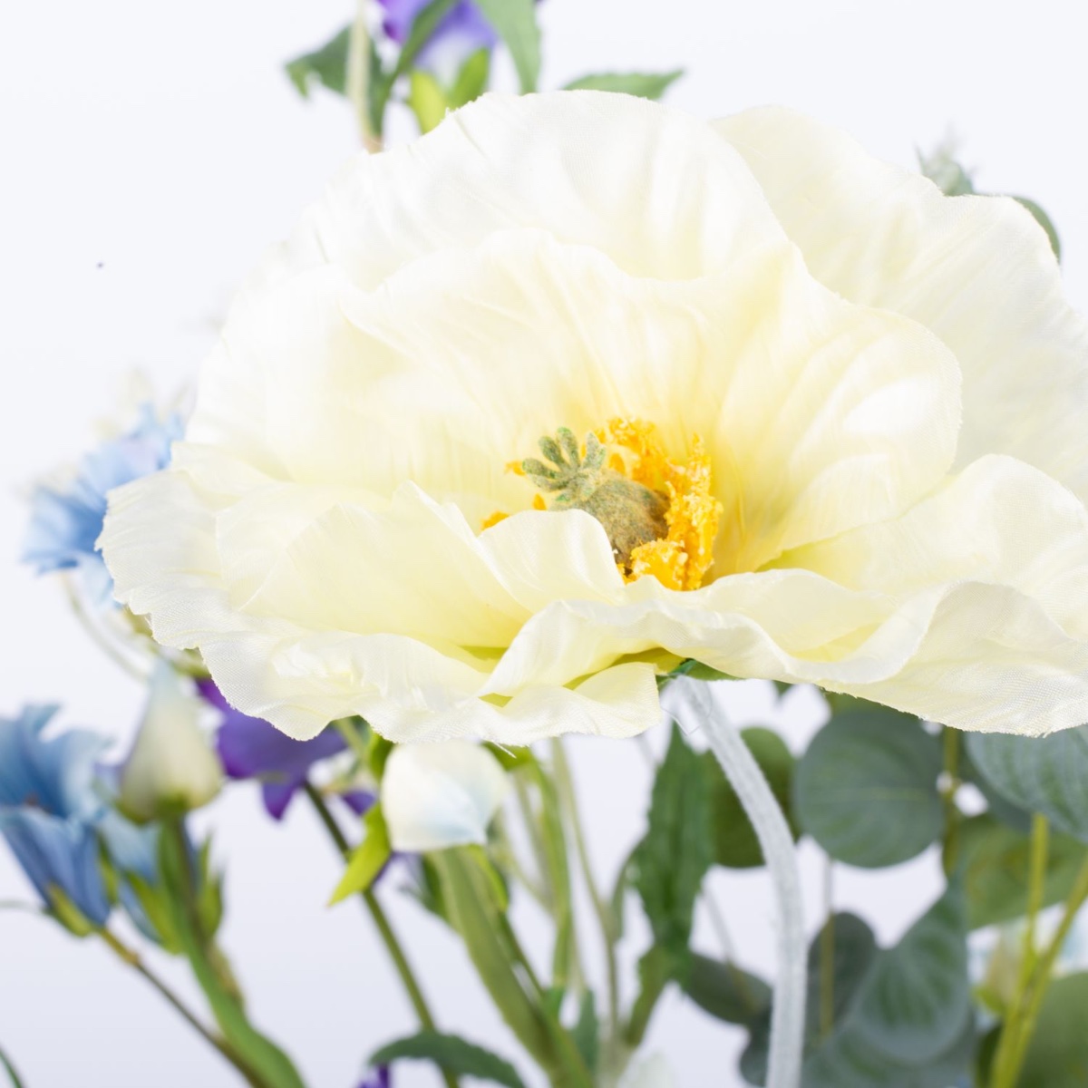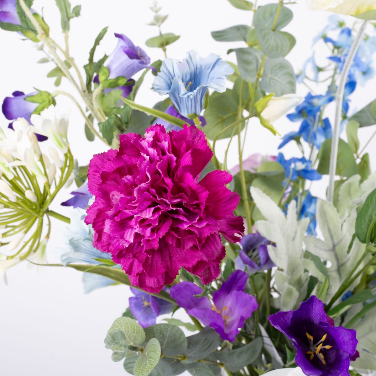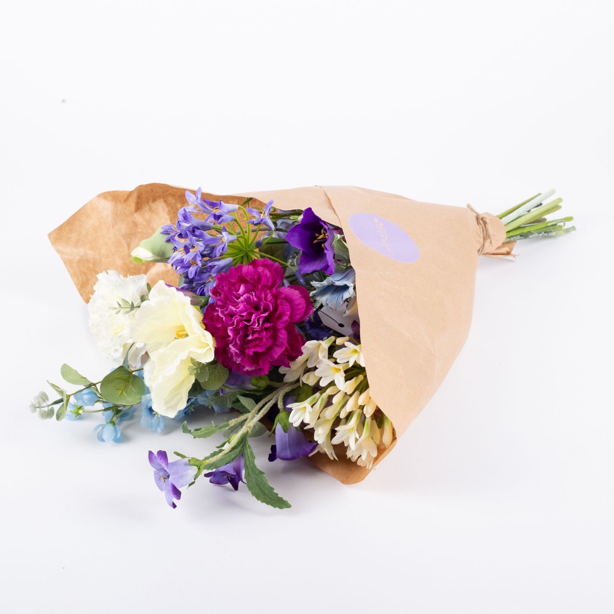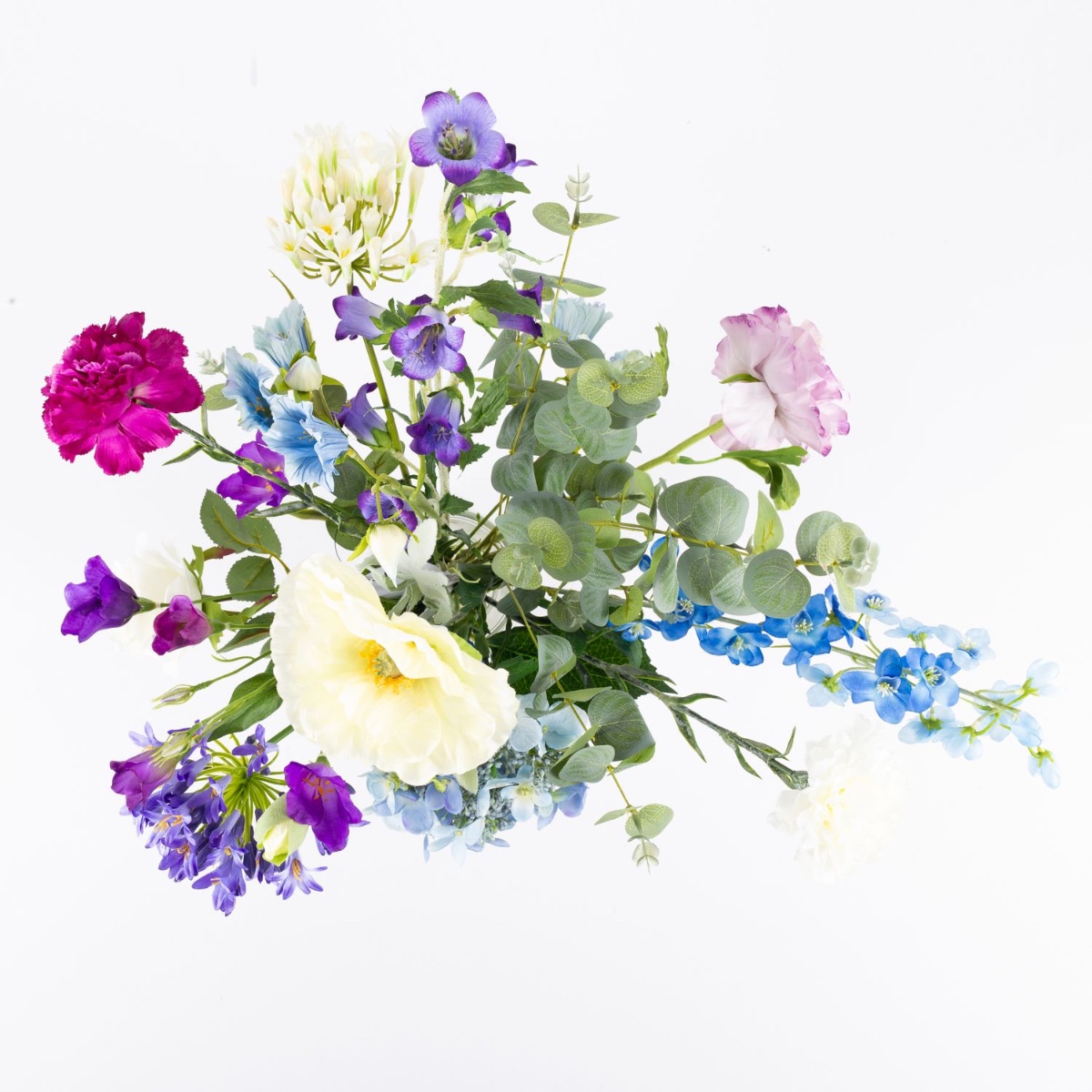 - Artificial bouquet AVIL consisting of the following or at least equivalent products: lush hydrangea and agapanthus, dreamy ranunculus, elegant rose, pretty carnation, delicate poppy, long-stemmed bellflower and delphinium, beautiful lisianthus and eucalyptus as an accessory