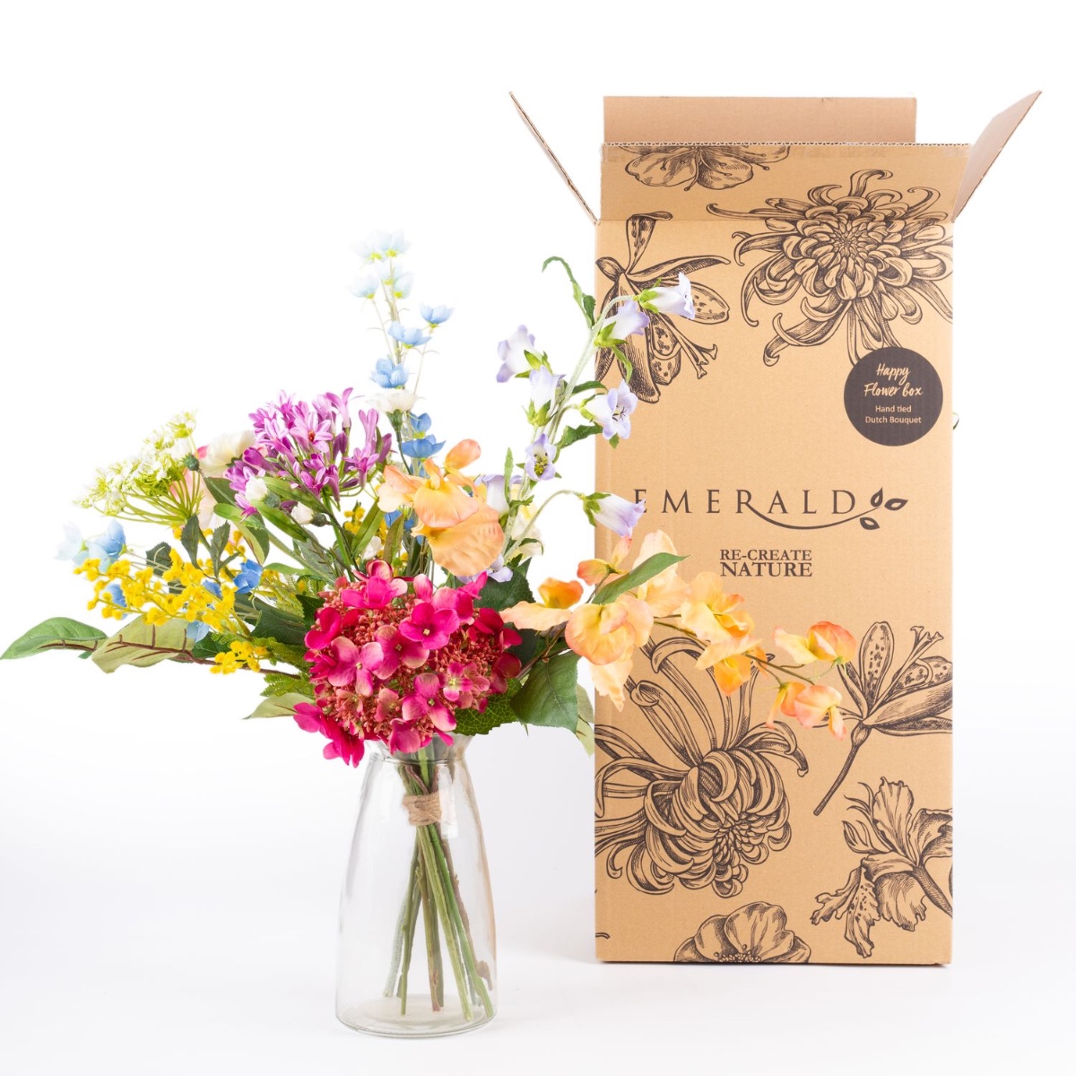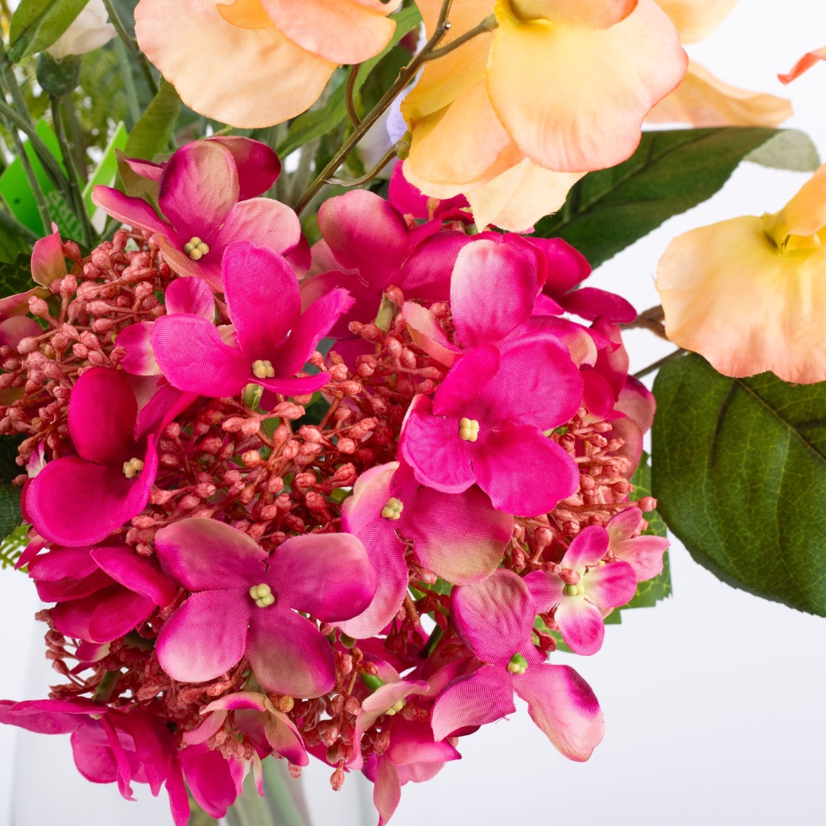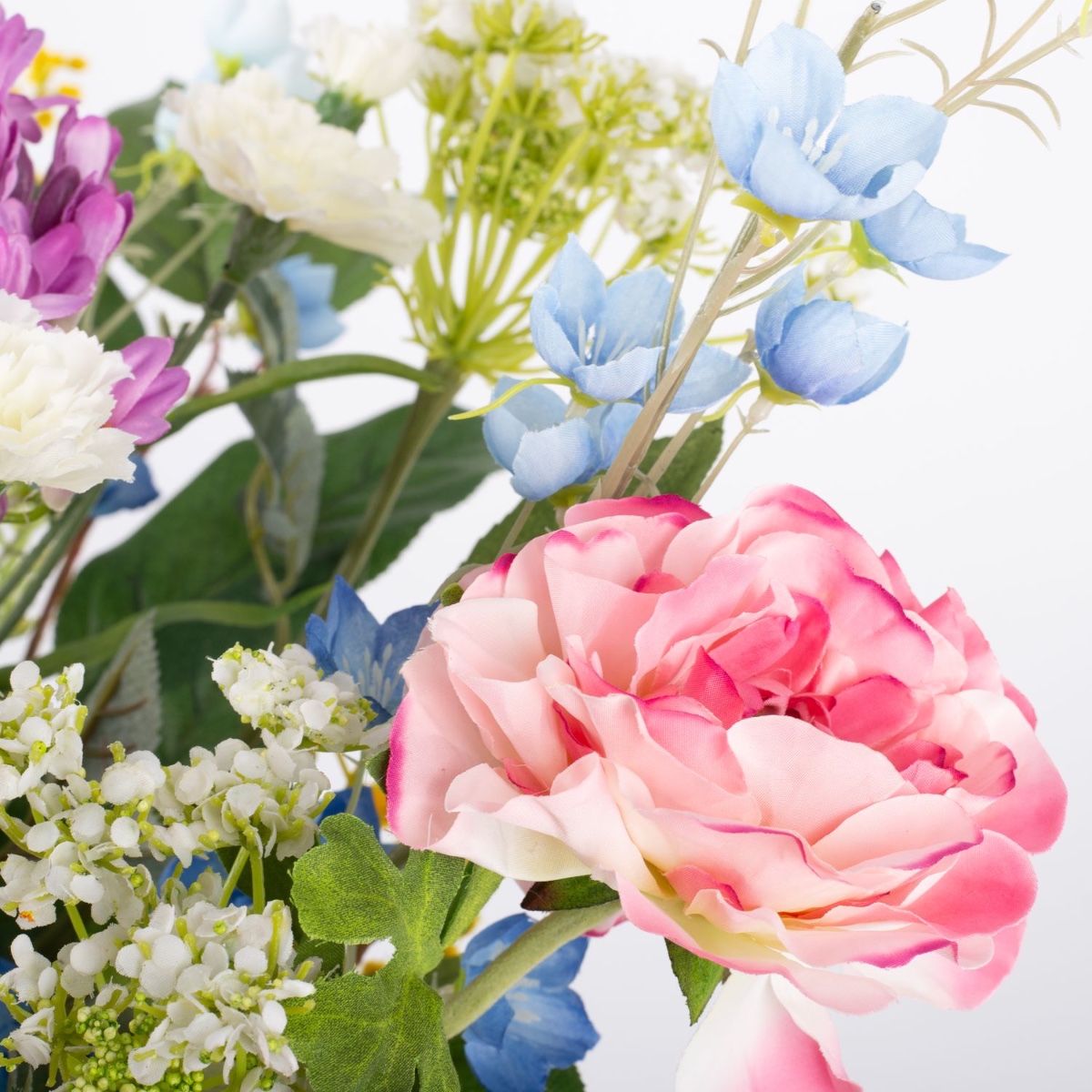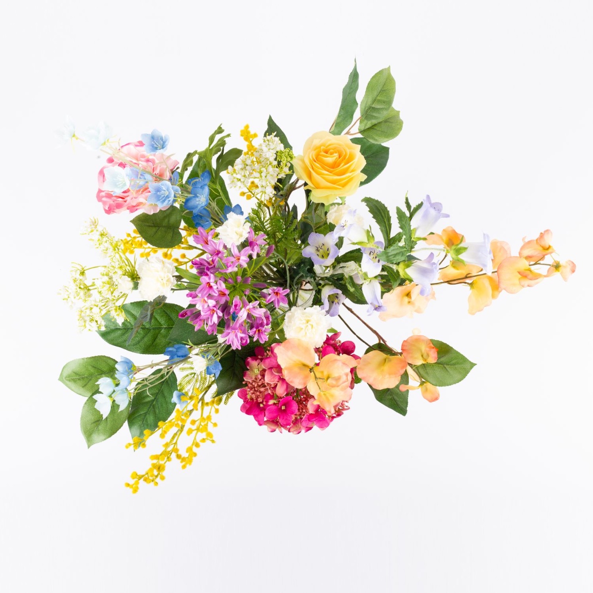 - Artificial bouquet ELVAN consisting of the following or at least equivalent products: lush hydrangea and agapanthus, dreamy ranunculus, elegant rose, pretty carnation, playful sweet pea, fine dill, long-stemmed bellflower and buttercup, fluffy mimosa and apple leaf as an accessory