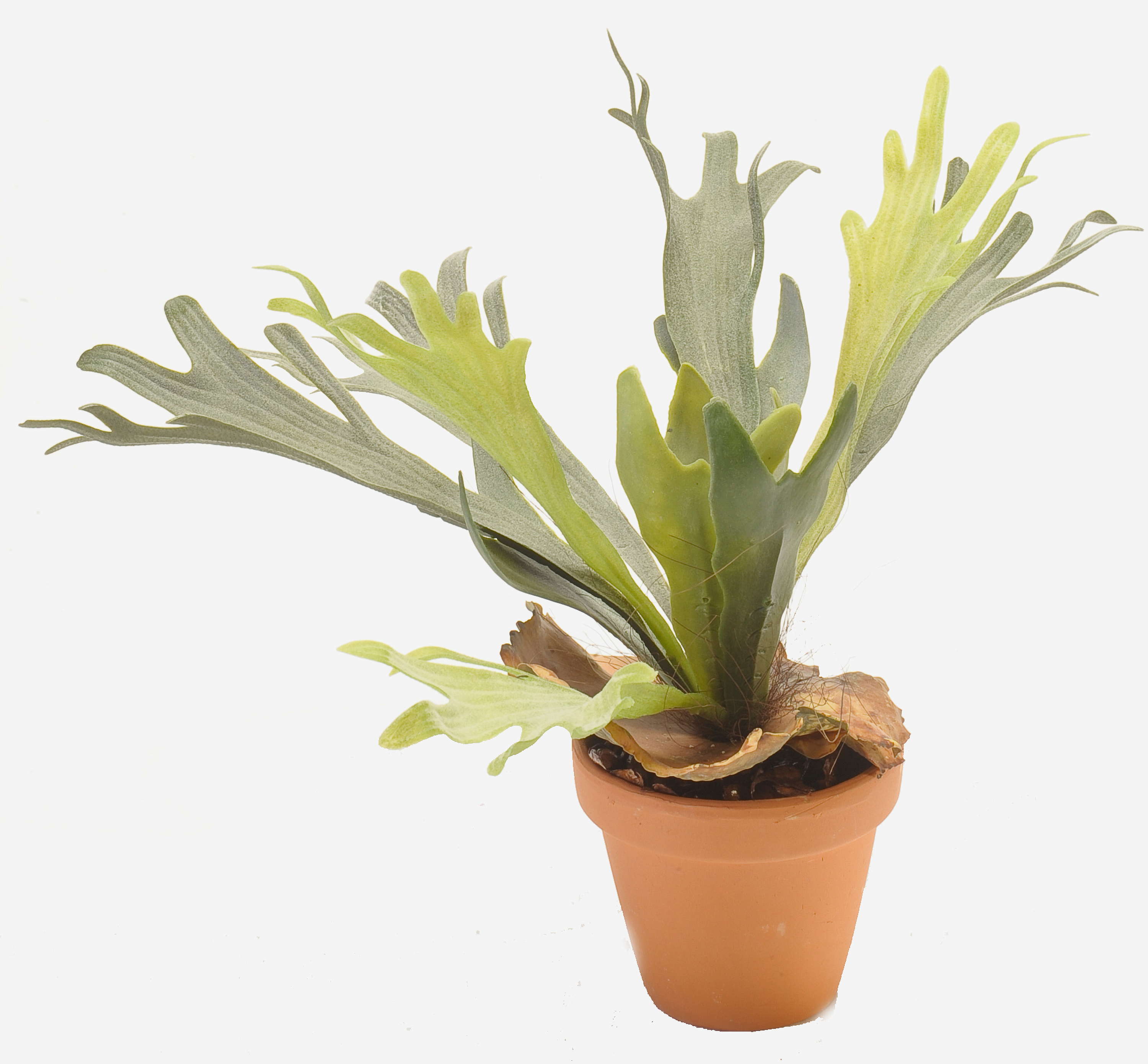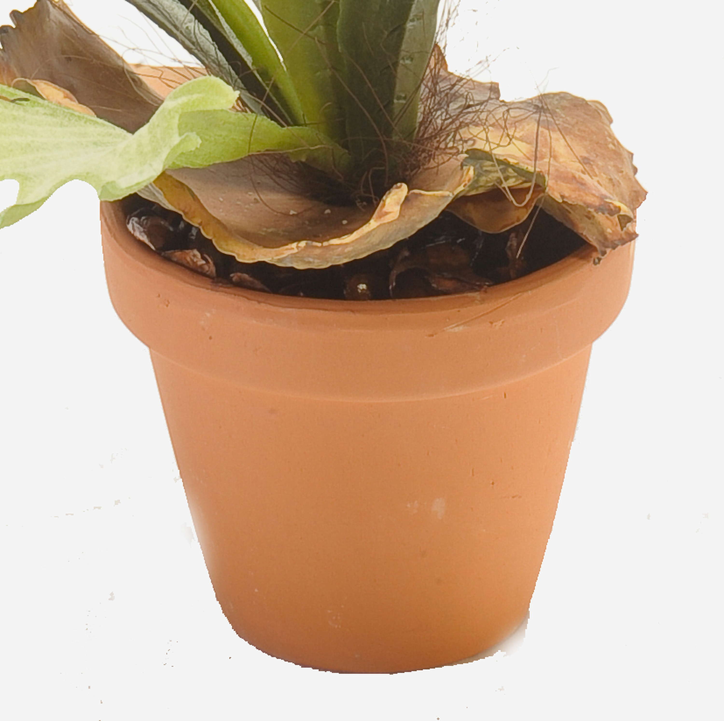 Artificial staghorn fern BAROJA in terracotta pot, green, 20"/50cm