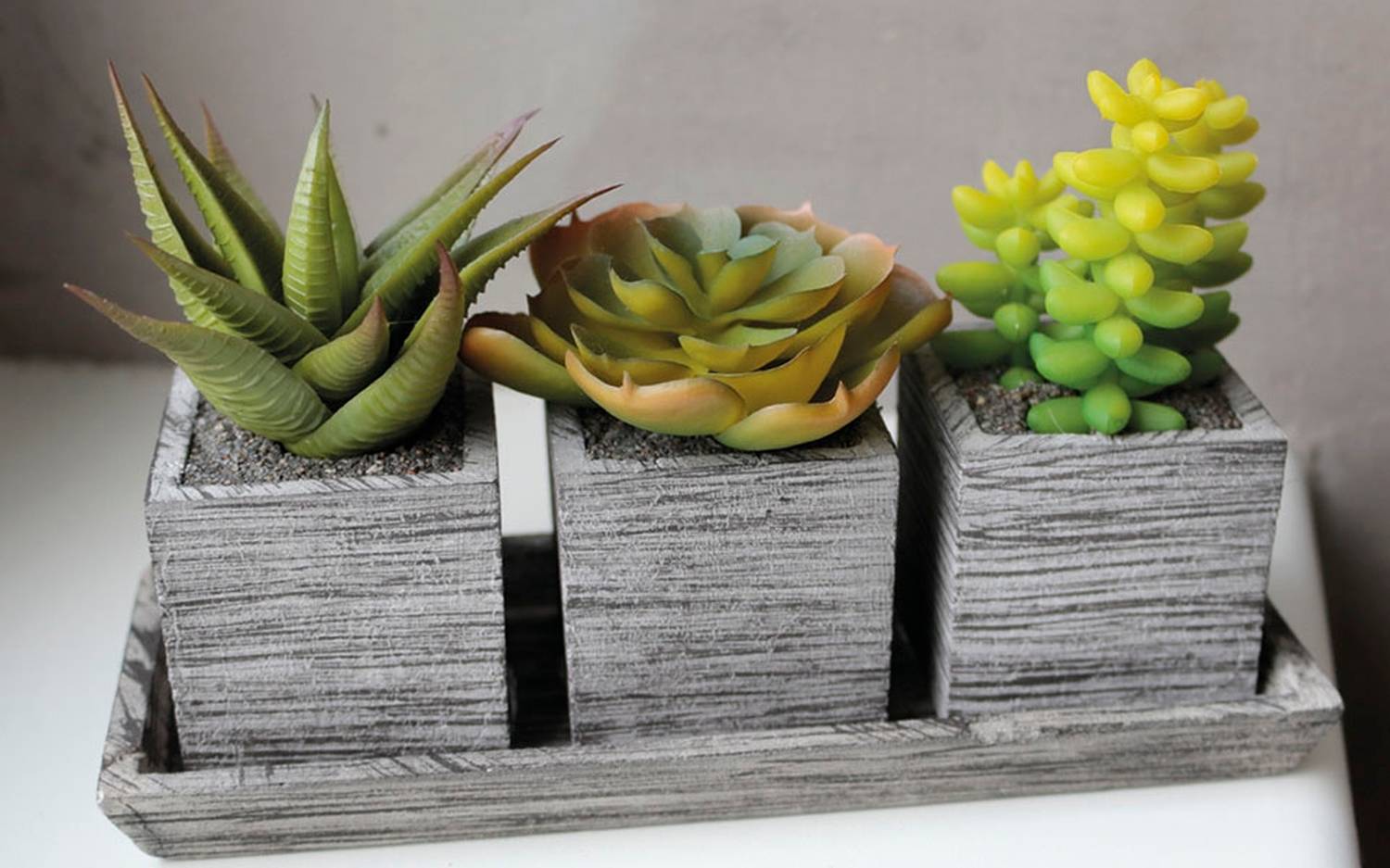 - 3 pots (5 x 5 x 5 cm) firmly attached to a decorative tray