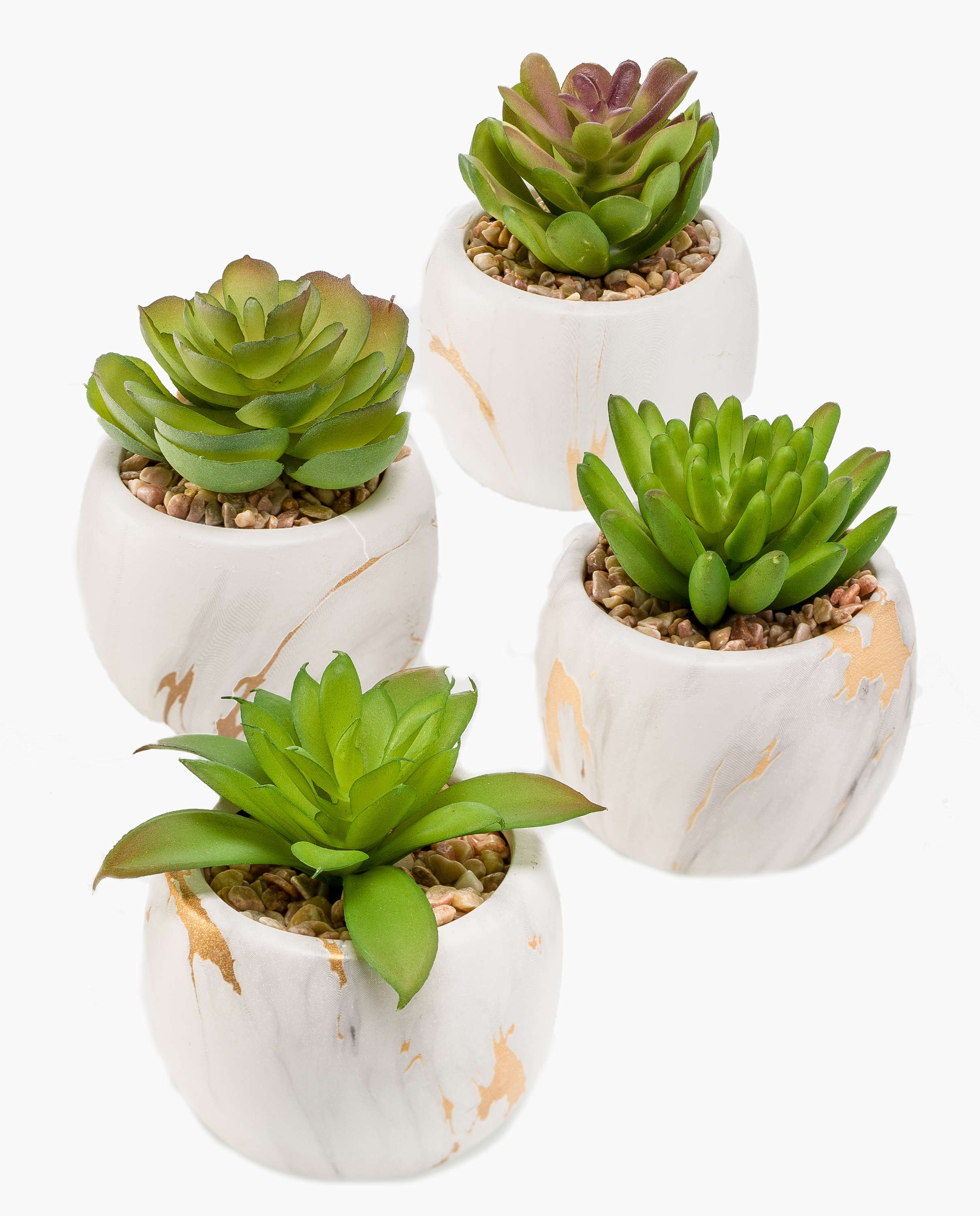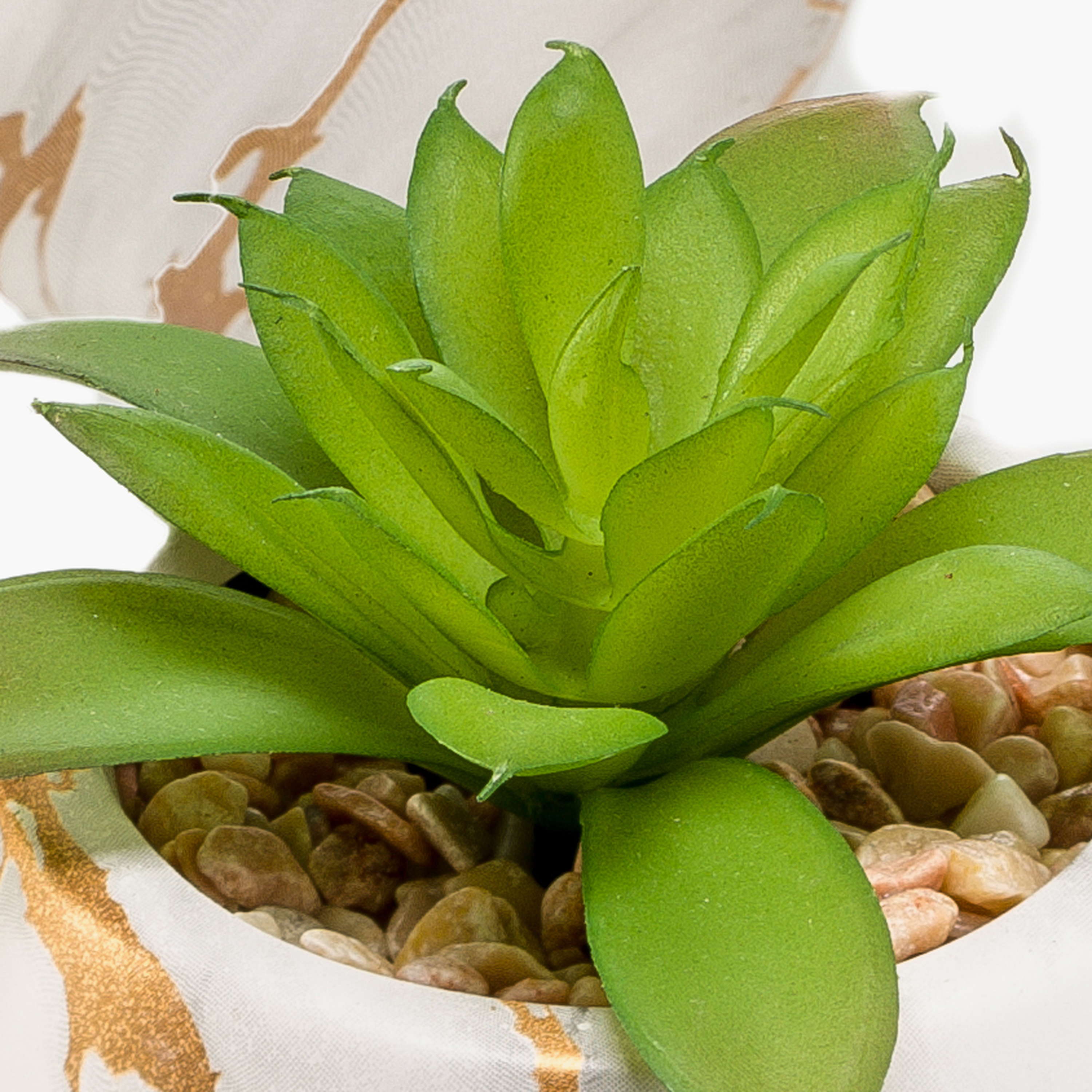 Artificial succulents LOYE in marble pot, 4 pieces, green, 5"-6"/13-15 cm