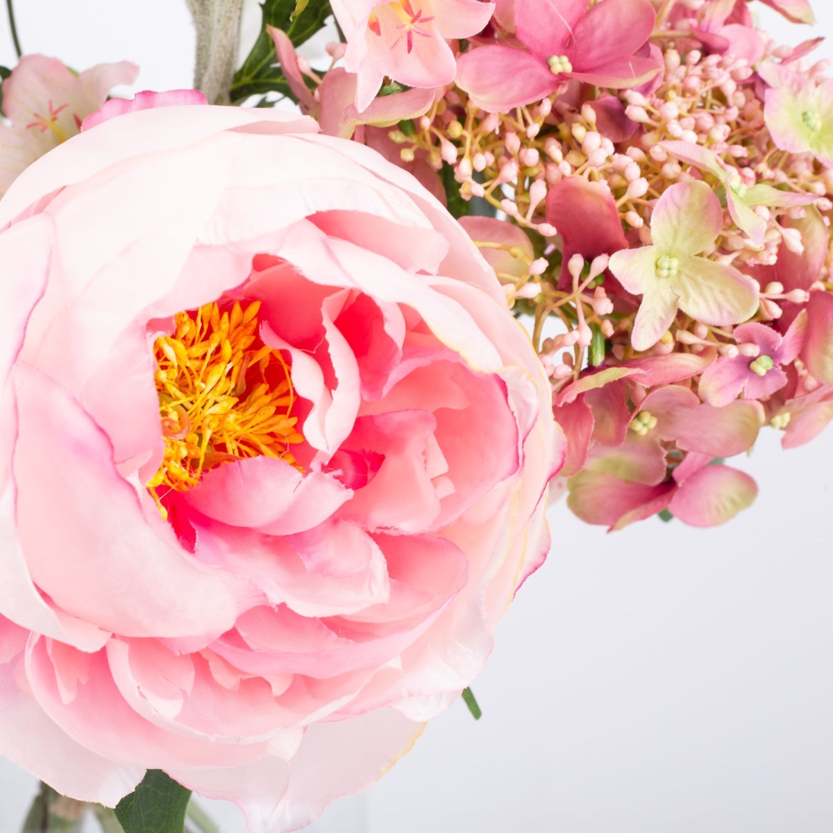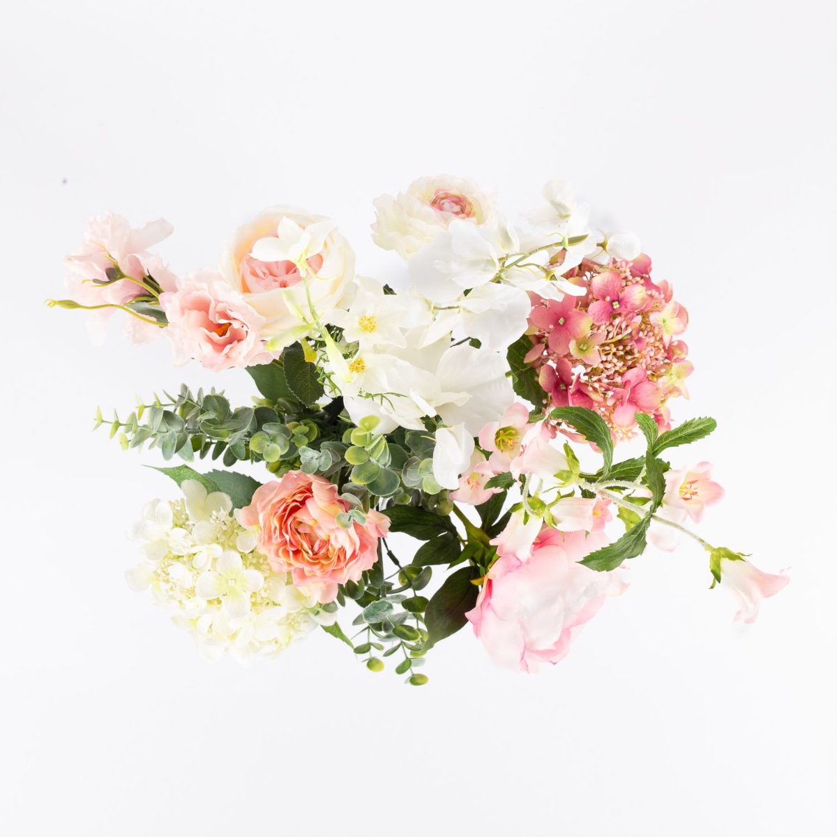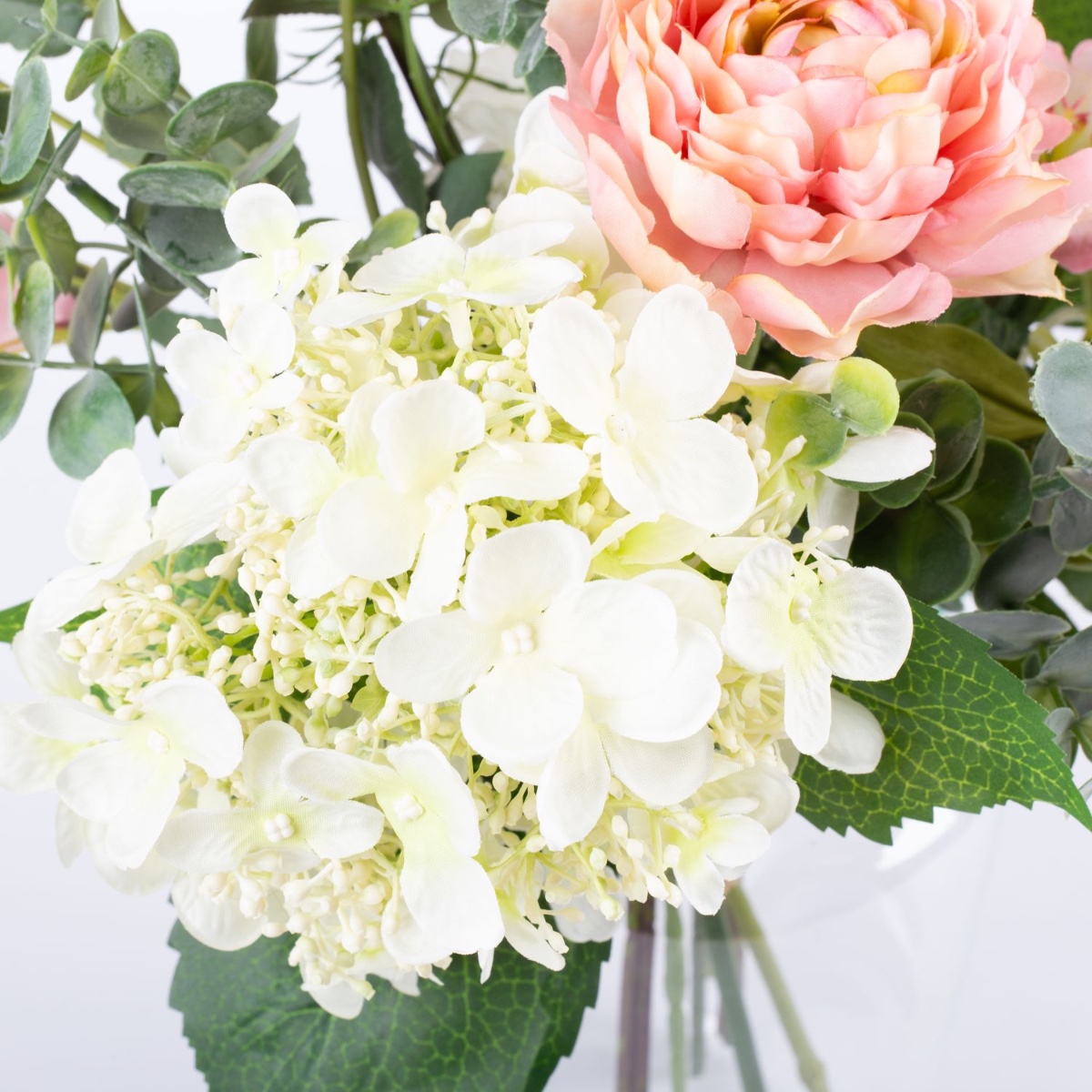 - Artificial bouquet SHAMSI consisting of the following or at least equivalent products: lush hydrangea and peony, elegant rose, dreamy ranunculus, long-stemmed delphinium and bellflower, fine sweet pea, pretty lisianthus and eucalyptus as an accessory