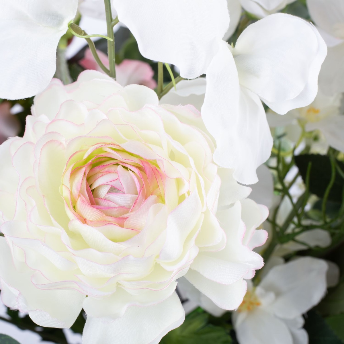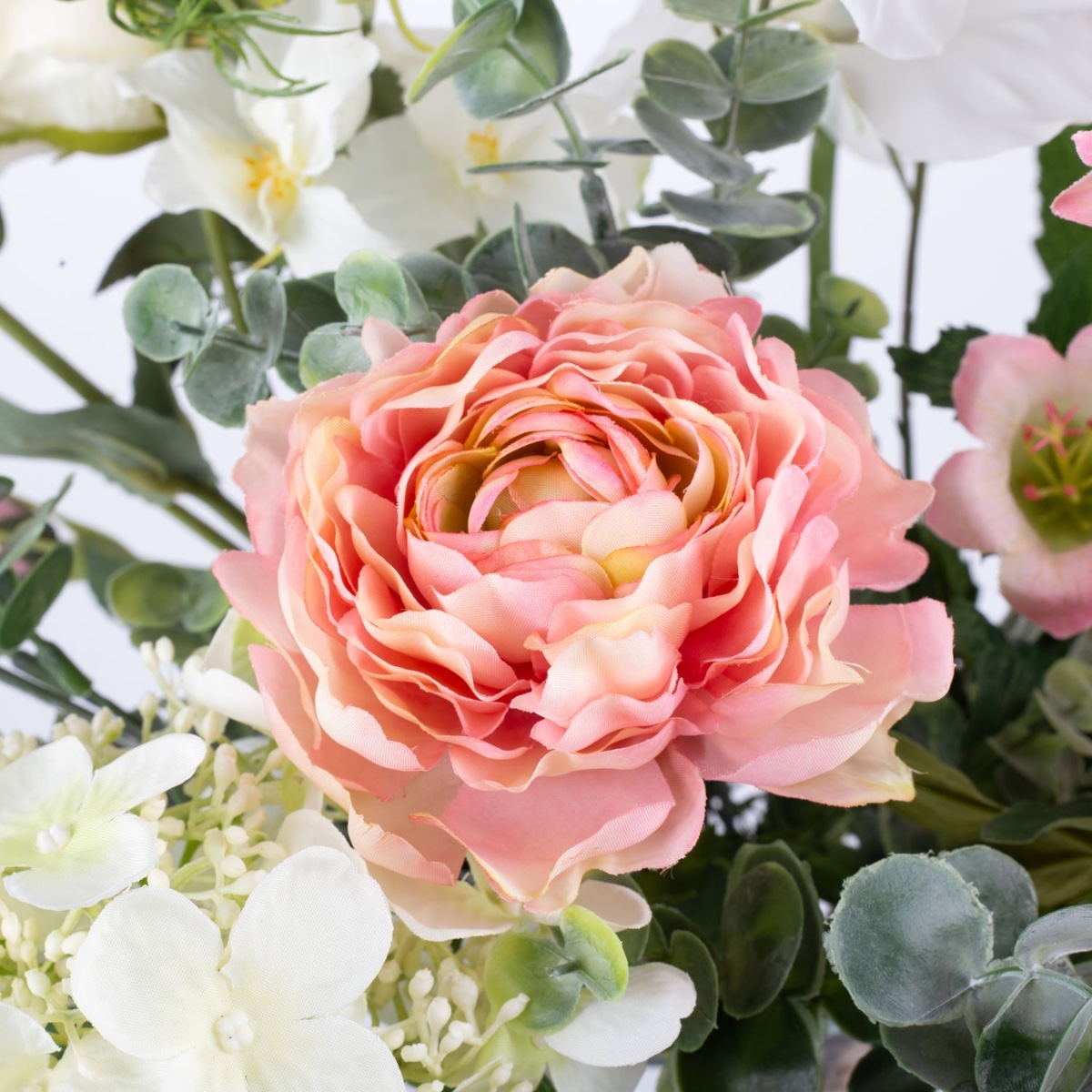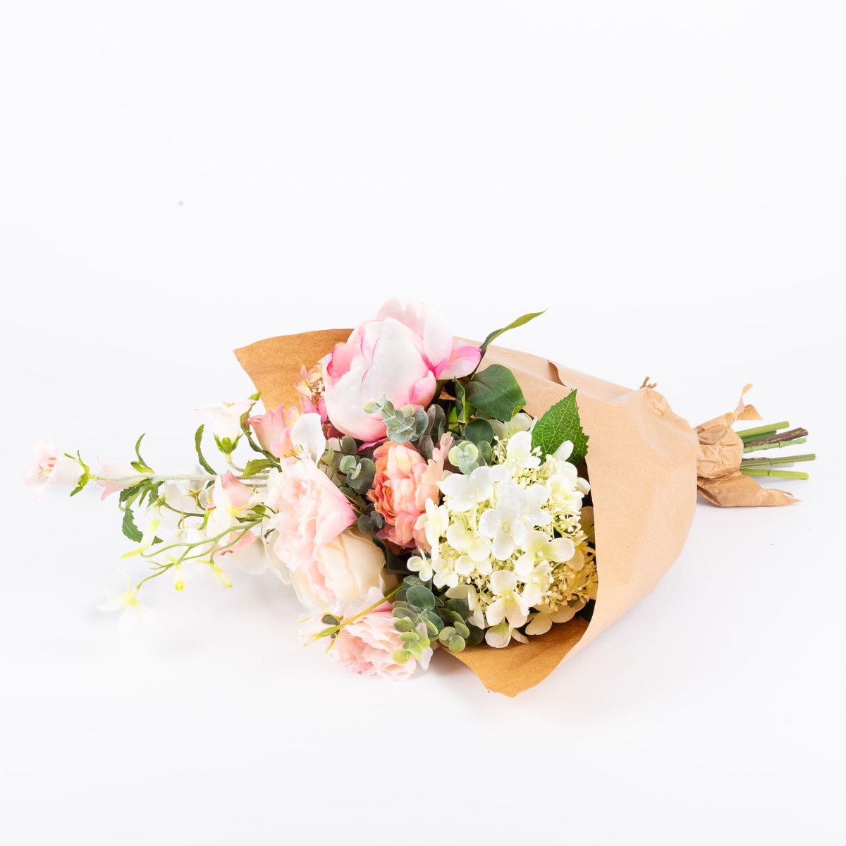 - Artificial bouquet SHAMSI consisting of the following or at least equivalent products: lush hydrangea and peony, elegant rose, dreamy ranunculus, long-stemmed delphinium and bellflower, fine sweet pea, pretty lisianthus and eucalyptus as an accessory