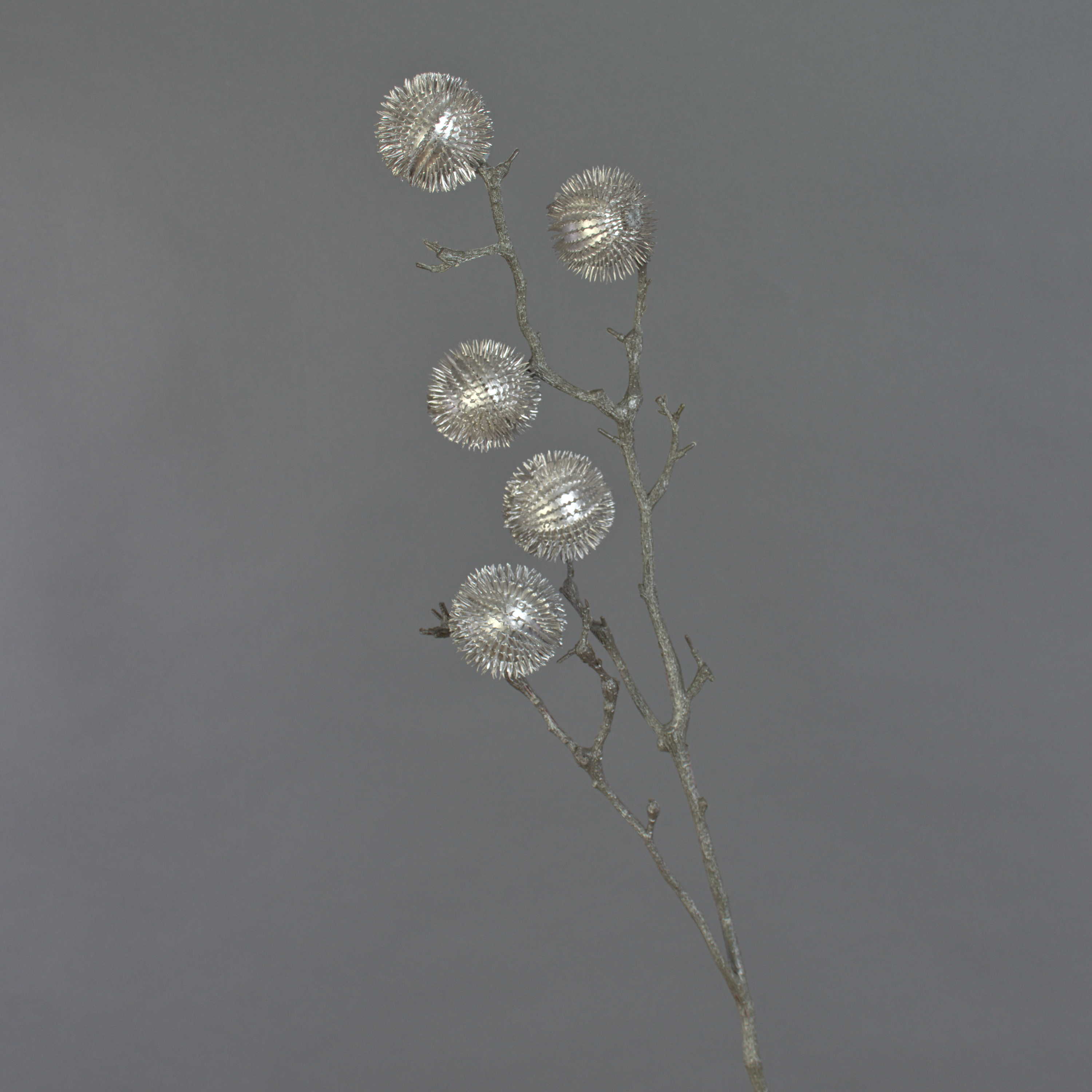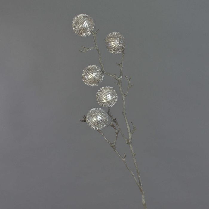 Artificial thistle branch ROBBY, silver, 3ft/100 cm, Ø 2.4"/6 cm