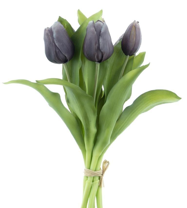 Artificial tulip bouquet LONA, black-white, 12"/30cm, Ø8"/20cm