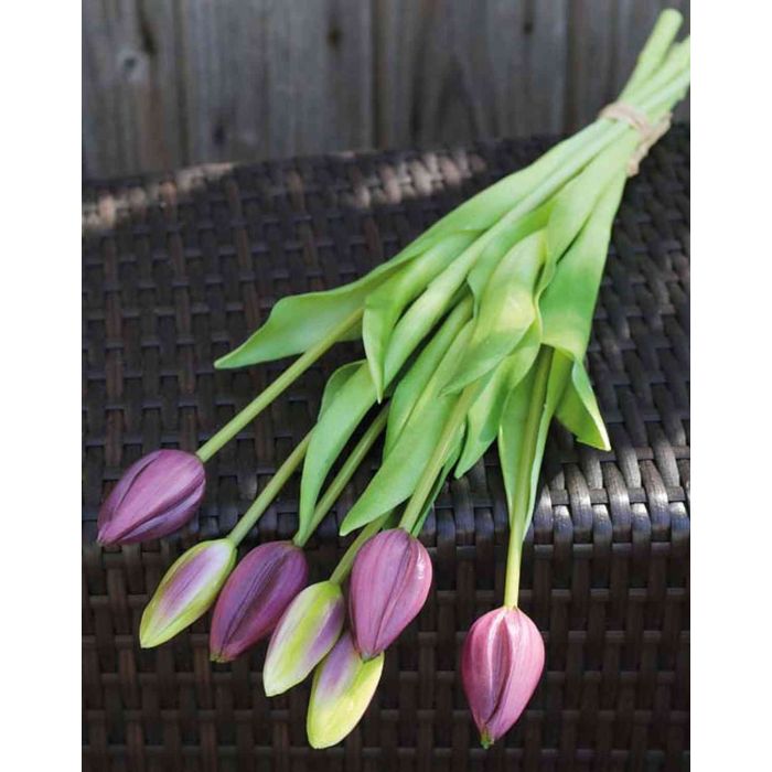 Artificial tulip bouquet LONA, purple-green, 18"/45cm, Ø8"/20cm