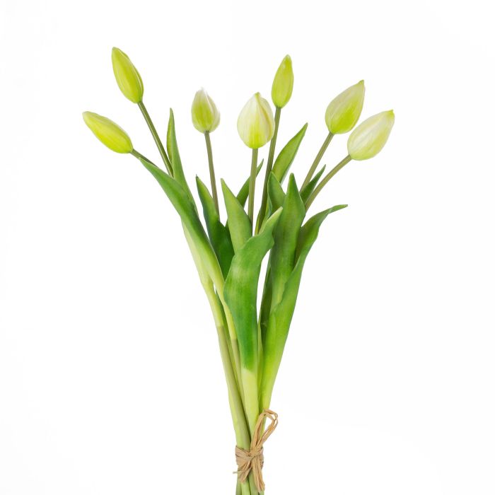 Artificial tulip bouquet LONA, white-green, 18"/45cm, Ø8"/20cm