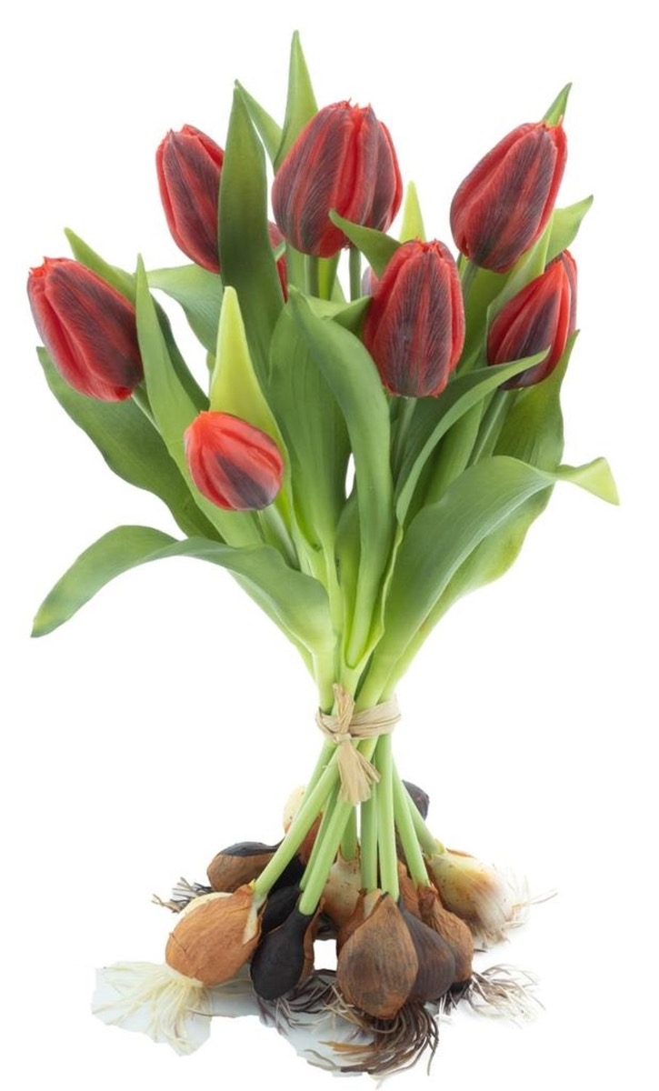 Artificial tulip bouquet LONA with bulbs, red-black, 14"/35cm, Ø10"/25cm