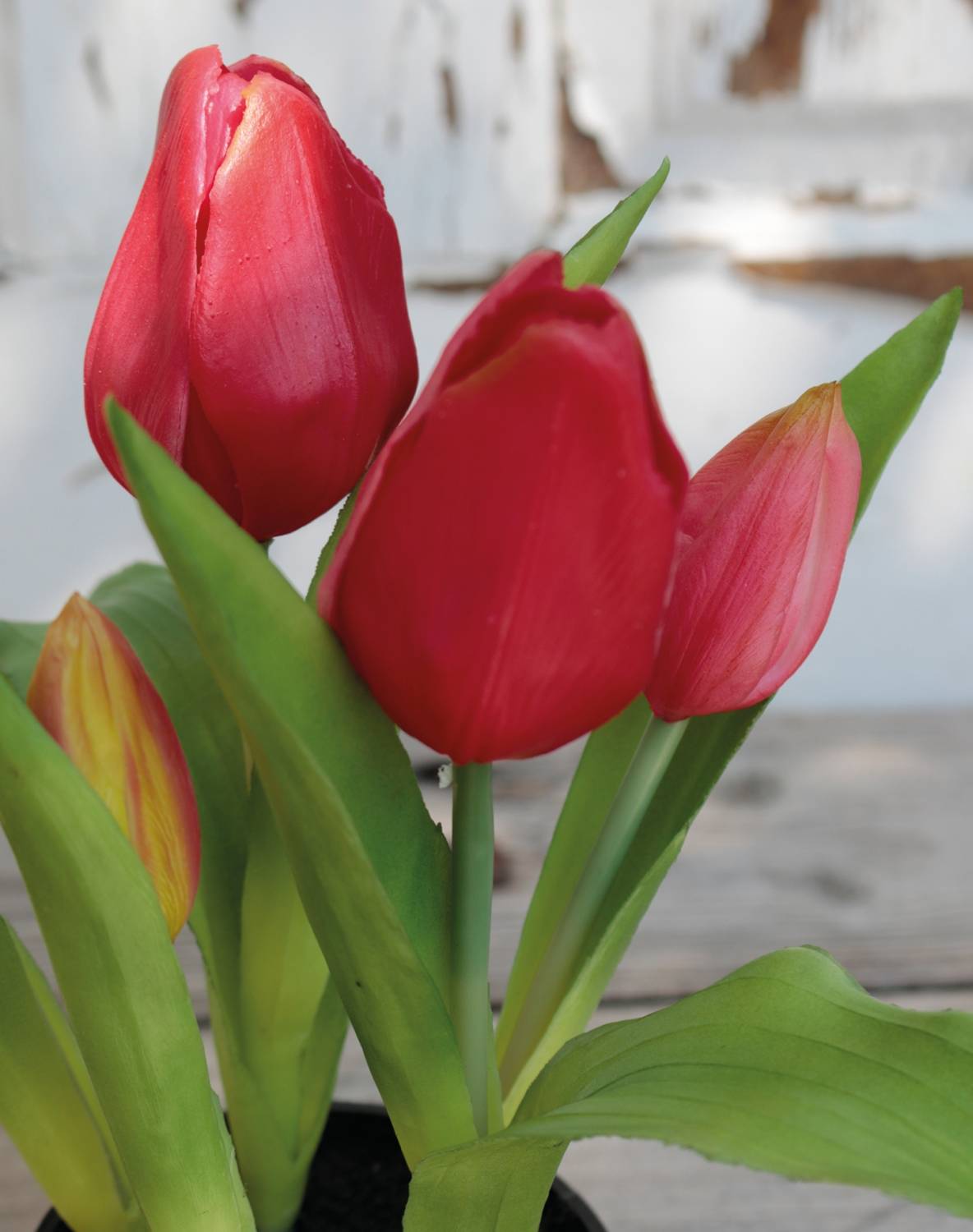 The fake tulip CAITLYN in colour pink-green has a total height of 10"/25 cm. The artificial plant will create a pleasant room atmosphere and is supplied in a decorative pot.