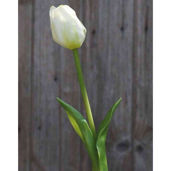 Artificial tulip LONA, white-green, 18"/45cm, Ø1.6"/4cm