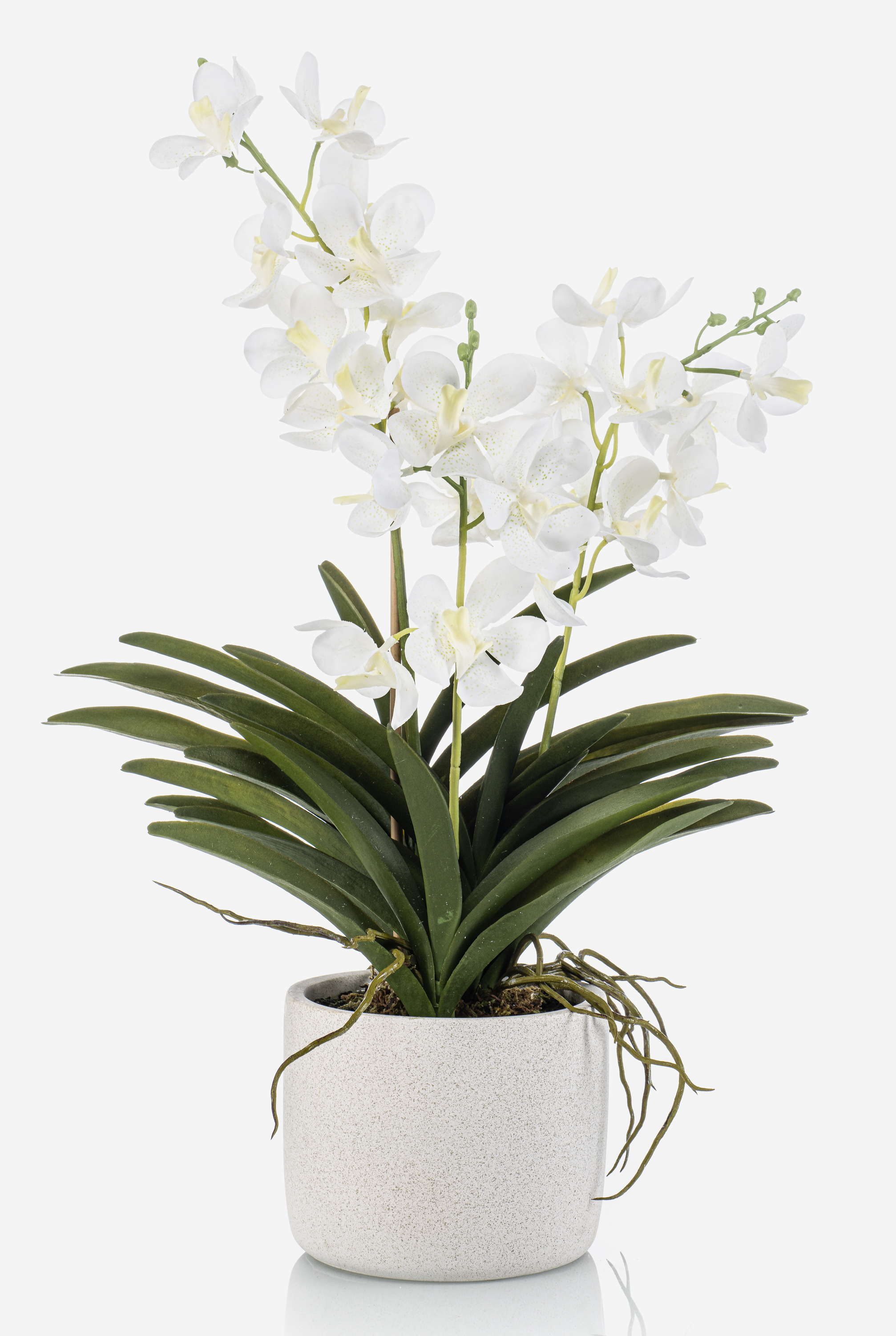 Artificial Vanda orchid PAVRA in ceramic pot, roots, white-cream, 24"/60cm