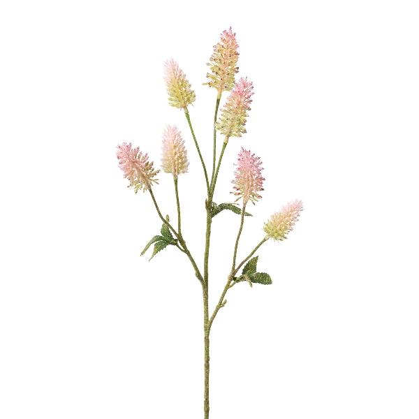 Artificial white clover branch TREVLA with flowers, pink, 22"/55cm