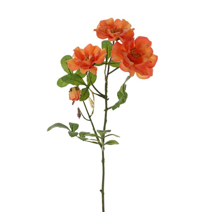 Artificial wild rose BALOU, orange, 24"/60cm, Ø2.8"-3.5"/7-9cm