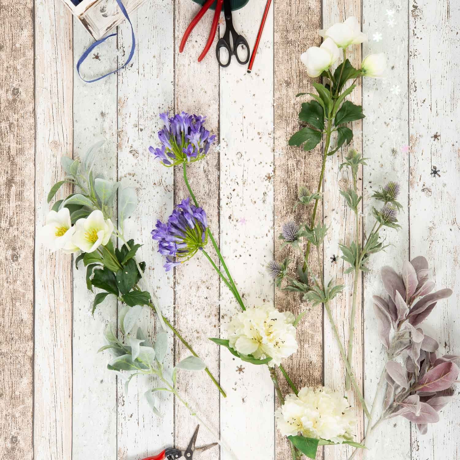 - Tied together with a sisal cord, the flowers and branches can be shortened individually or used separately for creative projects after removing the cord