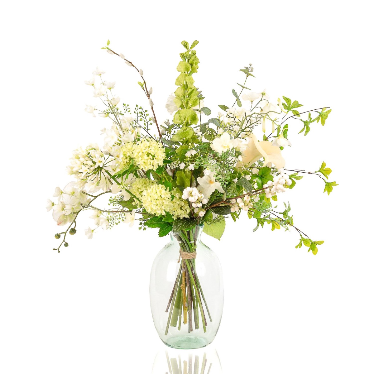 - Tied together with a sisal cord, the flowers and branches can be shortened individually or used separately for creative projects after removing the cord