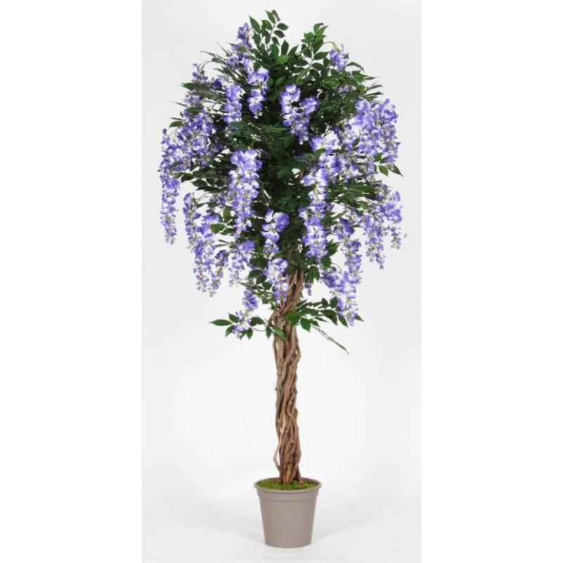 Artificial wisteria ANNIARA, real stems, with flowers, purple, 5ft/150cm - Made in Italy