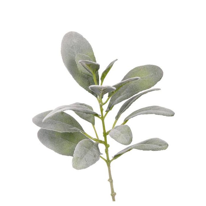 Artificial fluffy branch FERRIS with approx. 15 leaves. The wooly artificial twig, also called lamb's ear, will stand out especially because of its artificially white shimmering soft surface.