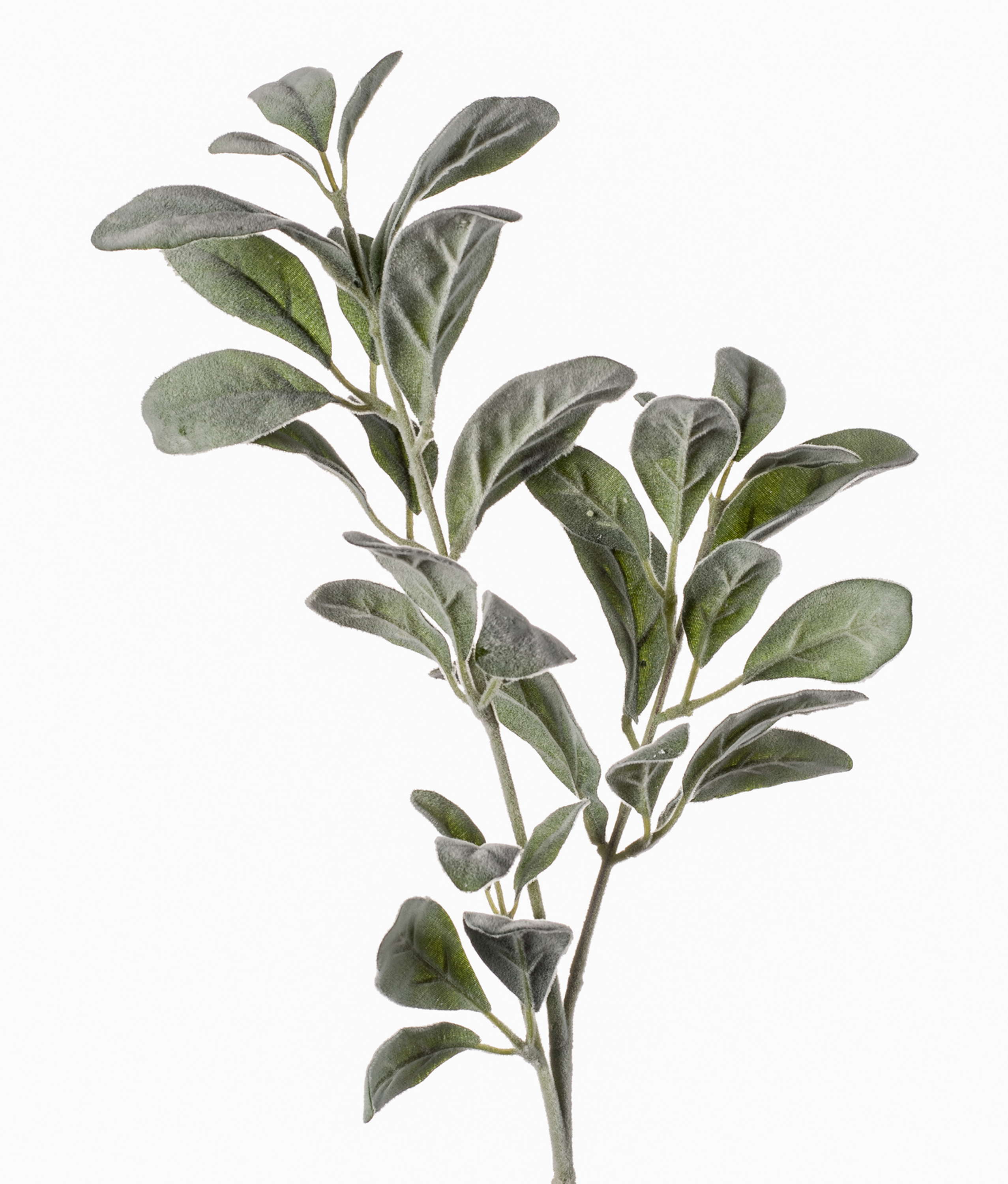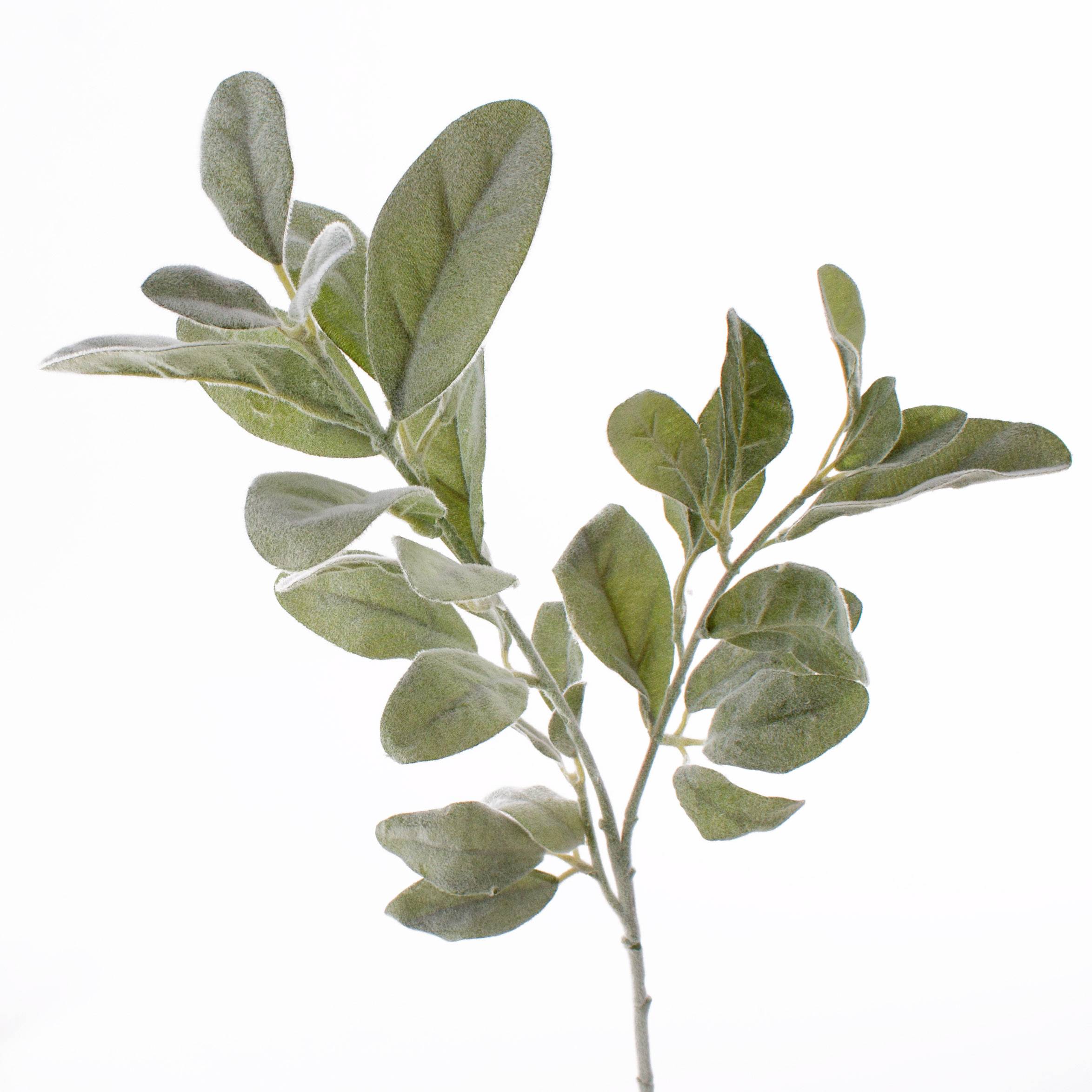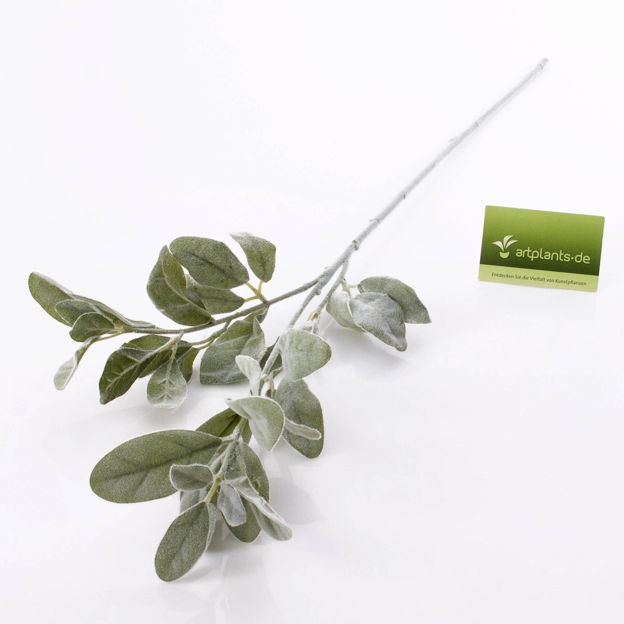 Fake woolly hedgenettle spray LEVIN with approx. 34 flocked leaves. This woolly hedgenettle also called lamb's ears will impress with its silver-coloured foliage.