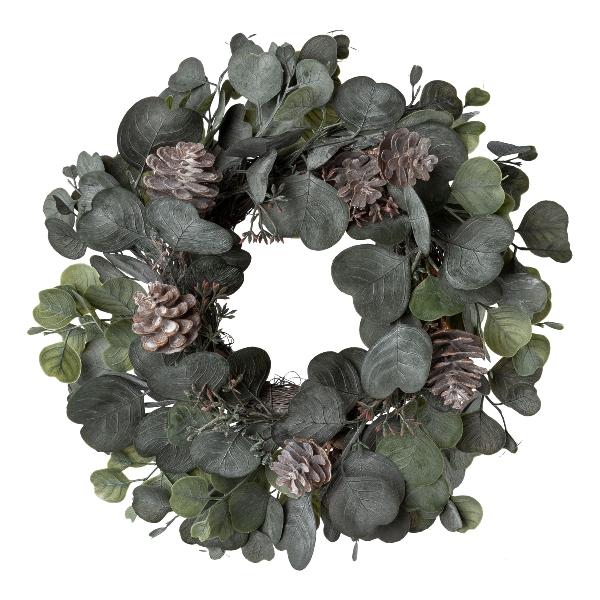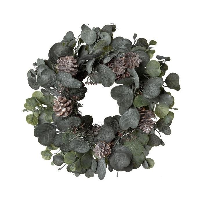 Artificial wreath Eucalyptus RINPO, cones, grey-green, Ø14"/35cm