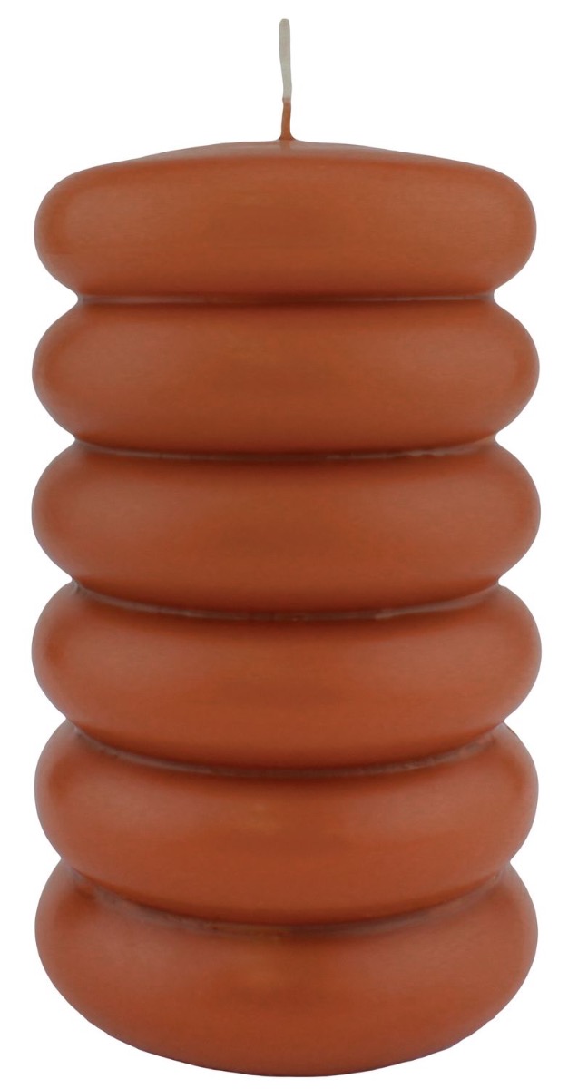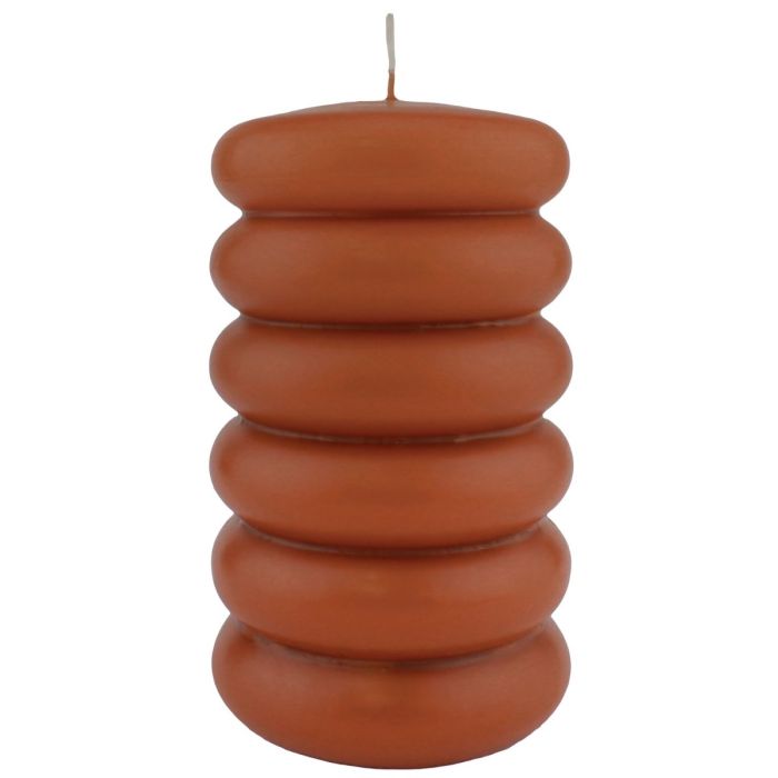 Block candle MONISHA with horizontal grooves, cognac, 6"/15cm, Ø3.5"/9cm, 69h - Made in Germany