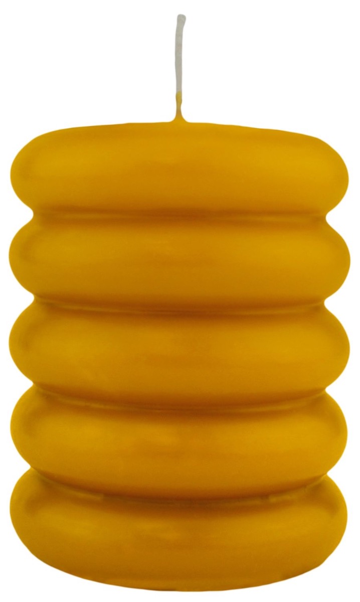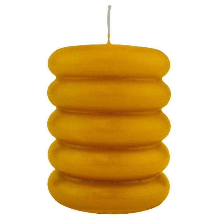 Block candle MONISHA with horizontal grooves, ochre yellow, 4.3"/11cm, Ø3.5"/9cm, 69h - Made in Germany