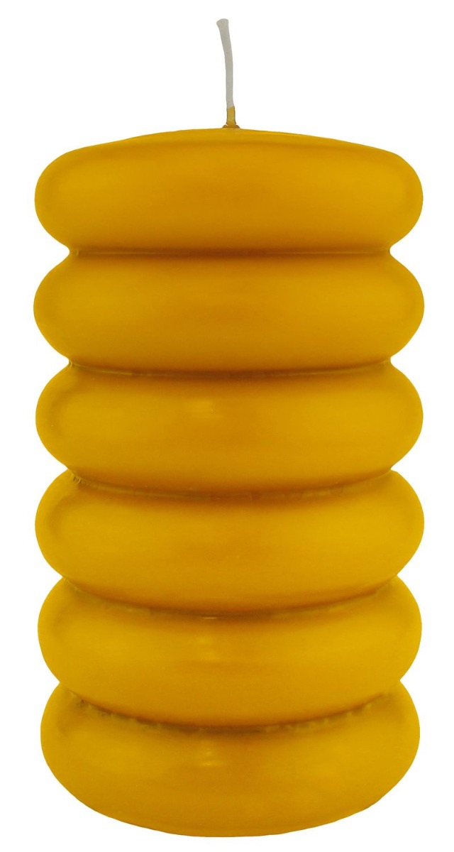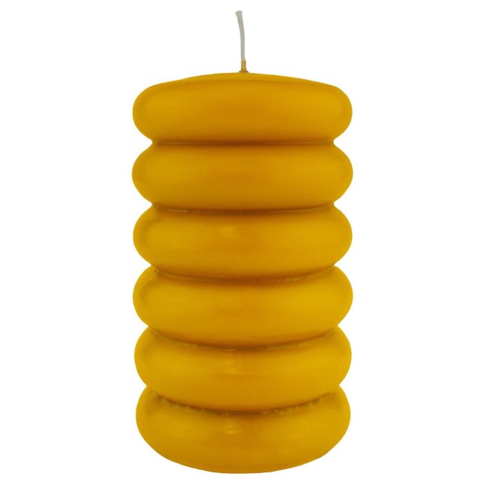 Block candle MONISHA with horizontal grooves, ochre yellow, 6"/15cm, Ø3.5"/9cm, 69h - Made in Germany
