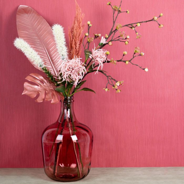Powder and blush! Typical summer colours are often in the powdery range. The red tones harmonise perfectly with the shiny metallic pink leaves. The blossoms of the maple branch shimmer out from behind the monochrome design of the look and are an echanting eye-catcher in any room! To round off the very feminine look, we opted for a rose-coloured glass balloon. It just goes perfectly with the antique pink background. Shop the Look!