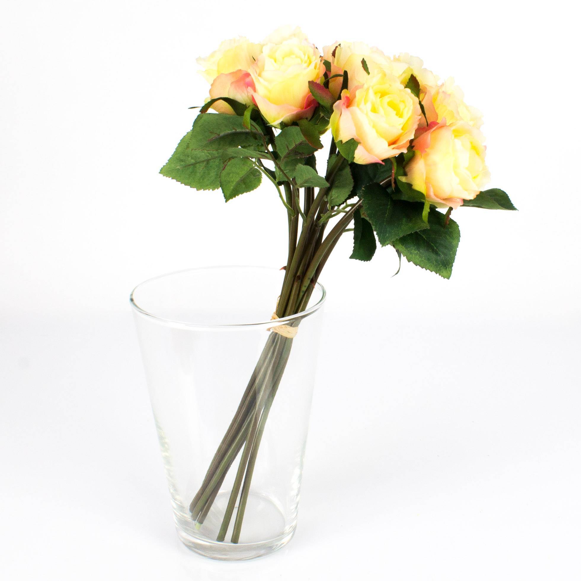 - consists of 10 single roses in flower colour yellow-light pink; flower diameter approx. 2.4"/6 cm, 2"/5 cm high